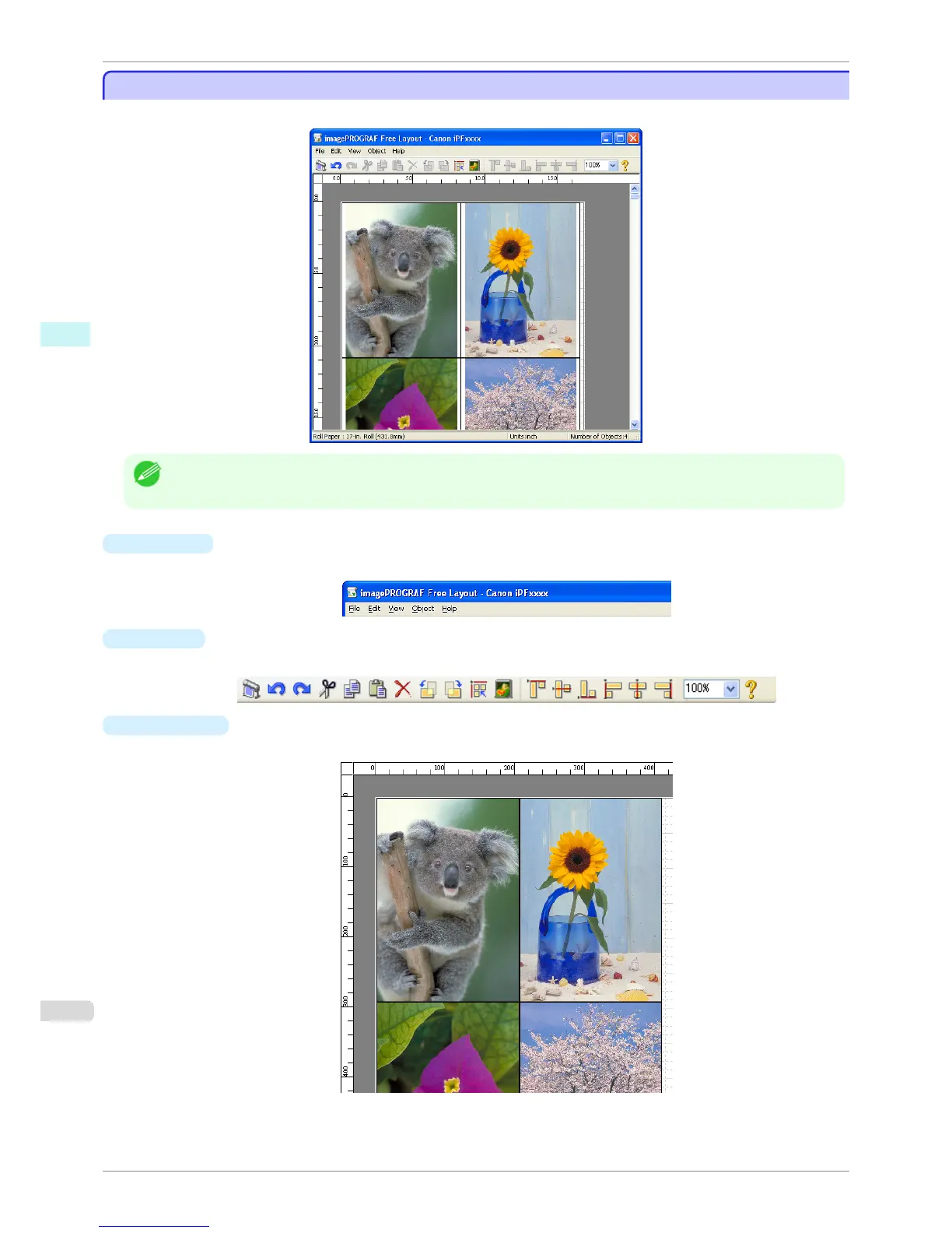 The Free Layout main window consists of the menu and tool bars, layout area and status bar.