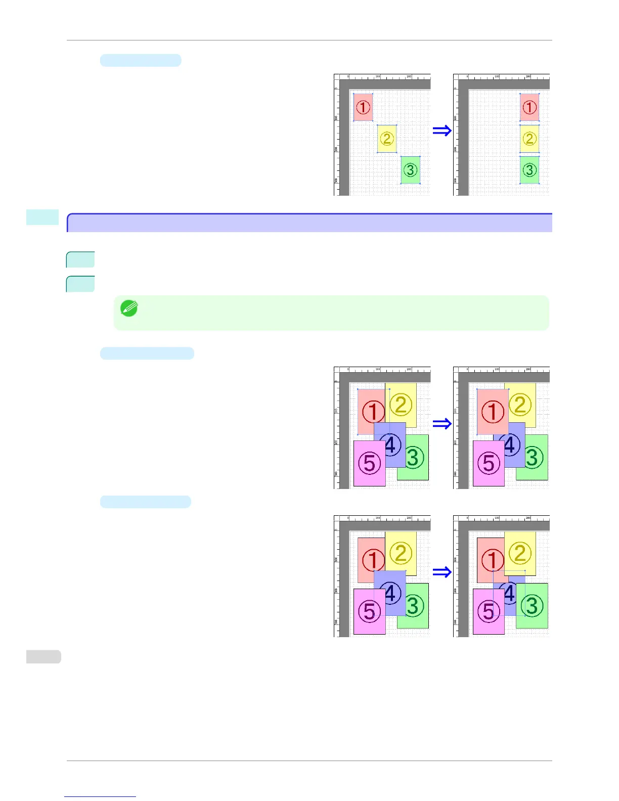 • The order of overlapping affects the order of objects automatically laid out.
