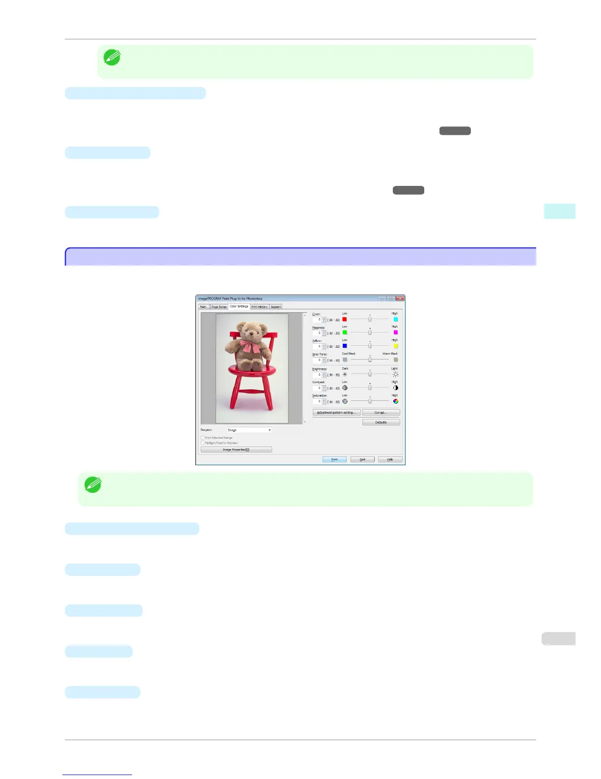 Cyan / Magenta / Yellow, Gray Tone, Brightness, Contrast, and Saturation