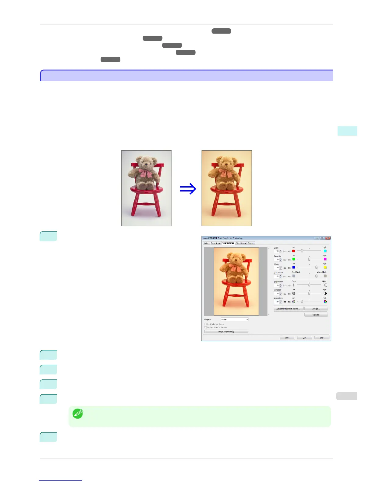 The following explanation is on the procedures for adjusting example image below.