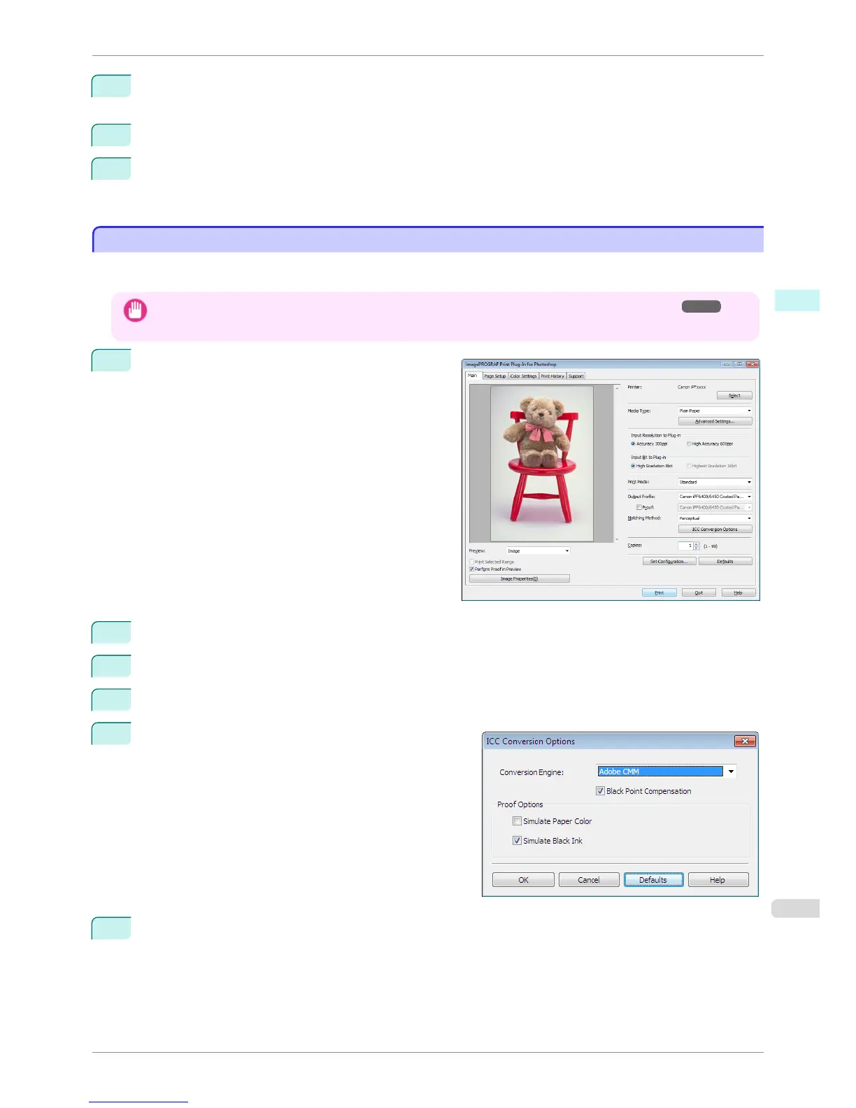 • Adobe CMM needs to be installed in order to use black point compensation. Refer to "Using Adobe CMM" ➔ P.258 for