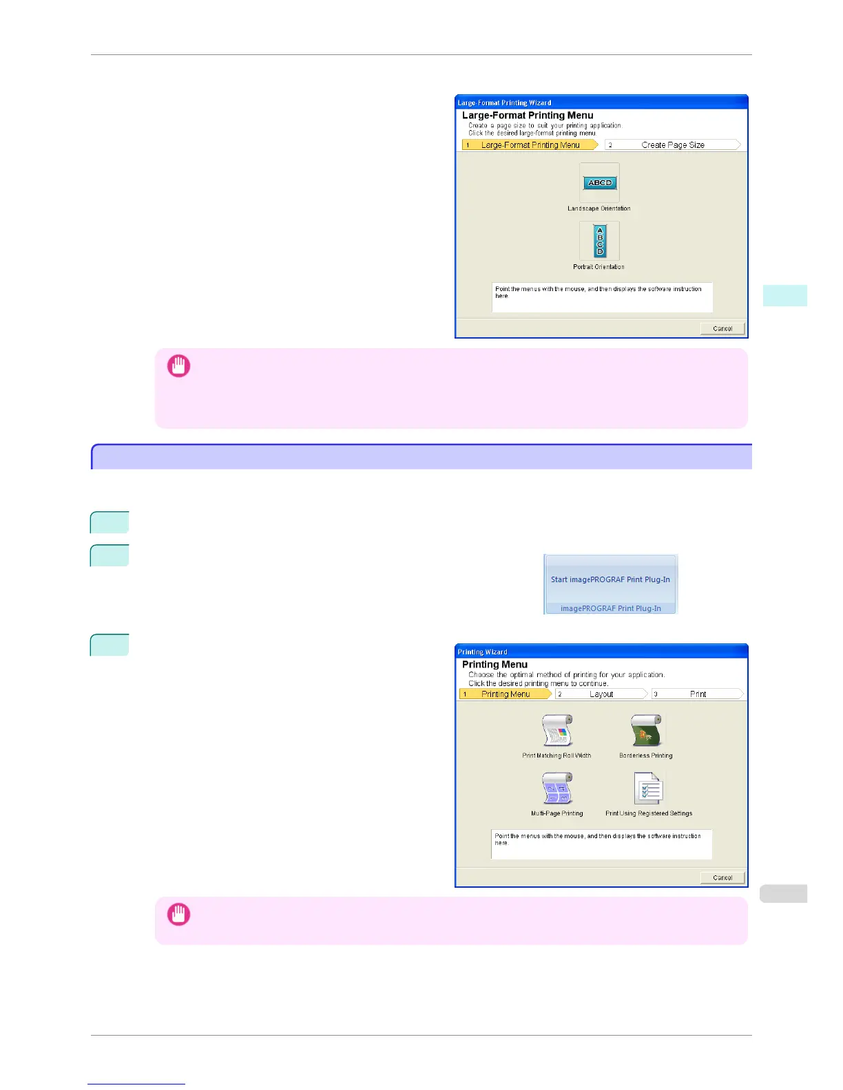 • If you want to change the display to another file or application while the Large-Format Printing Wizard is