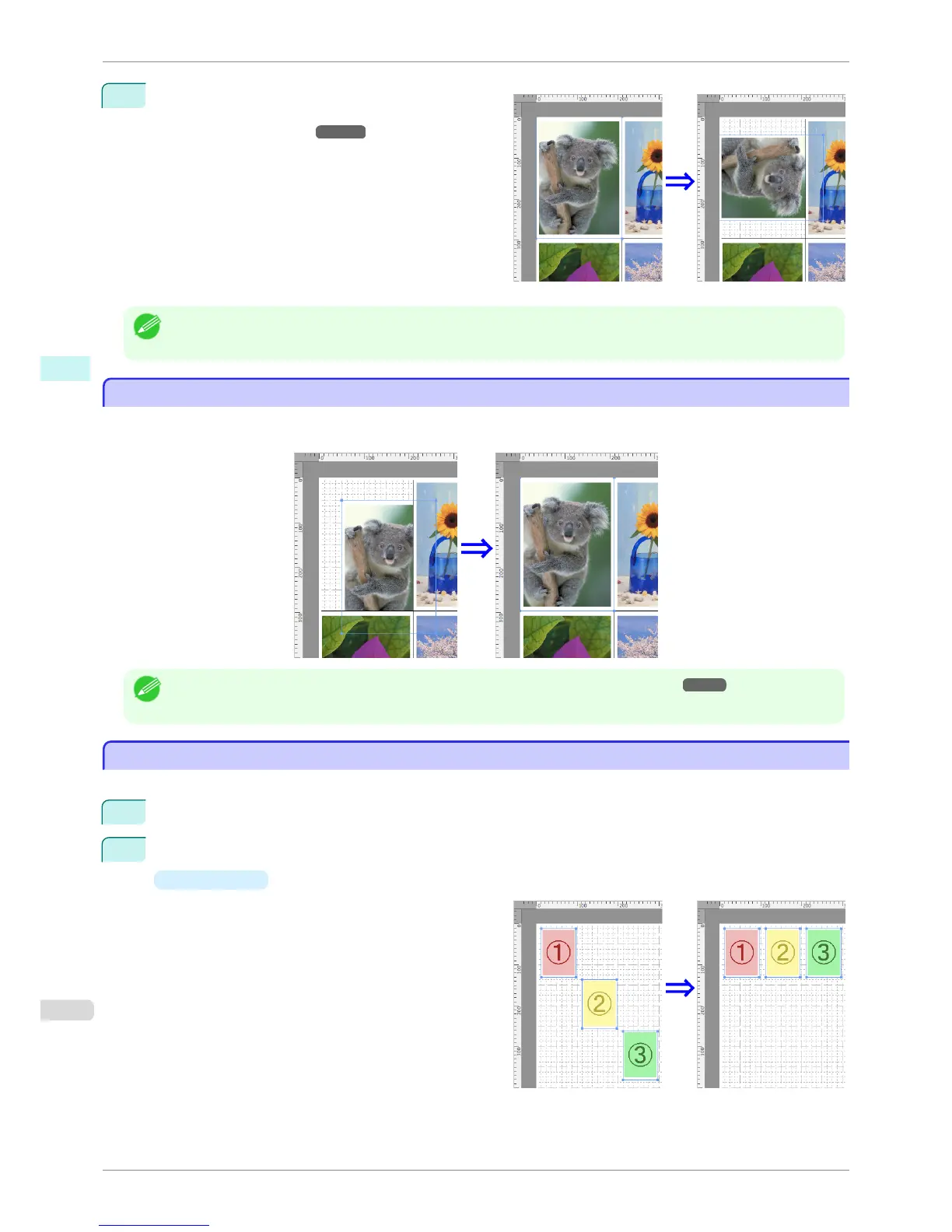• The object layout order varies depending on the Order setting on the Page Setup Dialog Box ➔ P.375 .