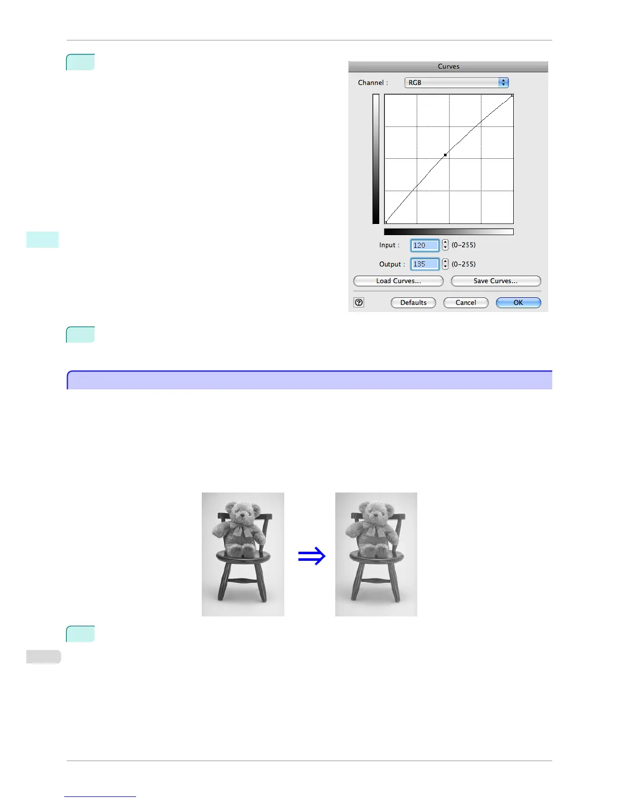 The following explanation is about the procedures for adjusting example image below.
