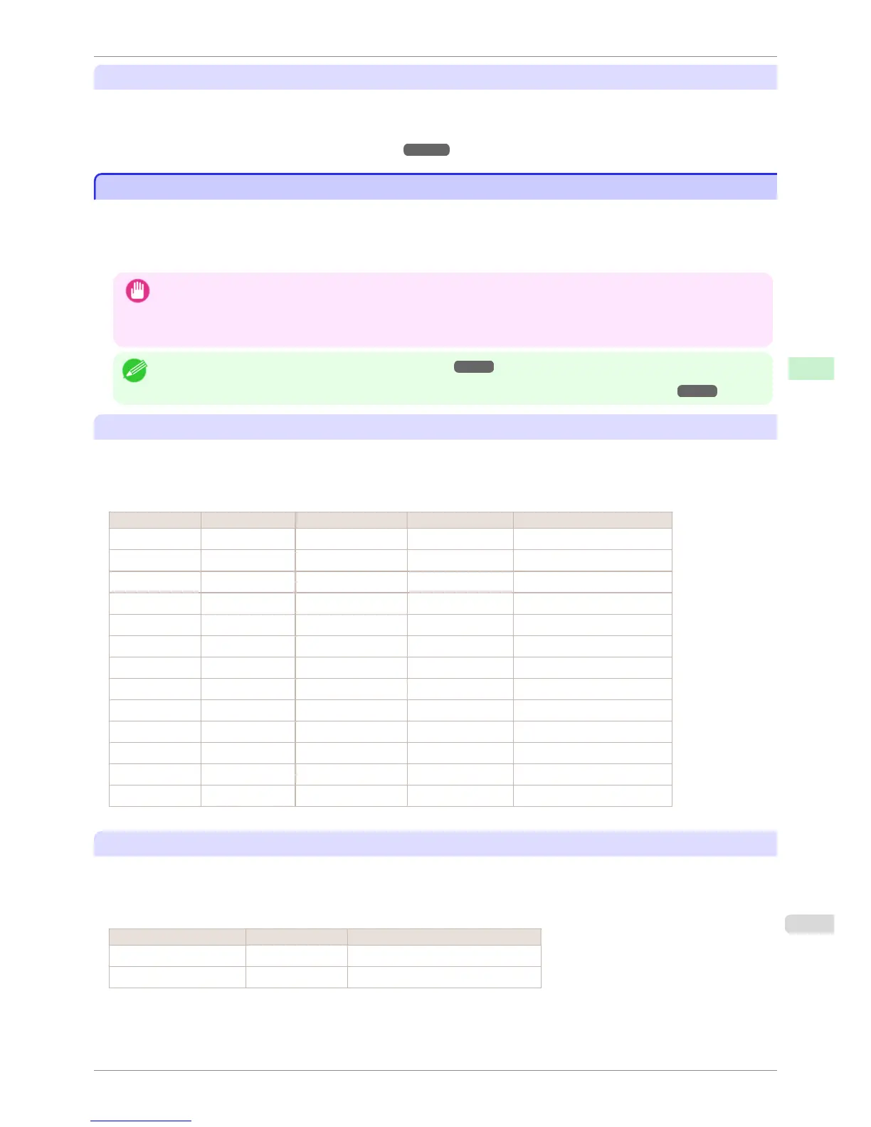 these settings will make it difficult for bleeding ink and the printhead rubbing to occur. Refer to the following table