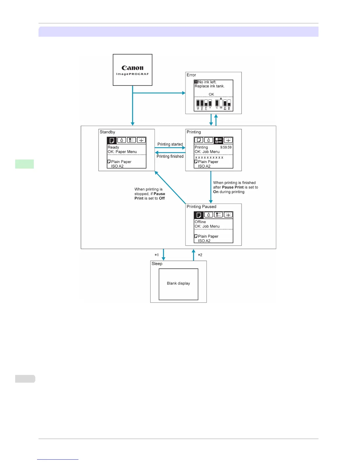 The display transitions while the printer is in the normal status (the status where no errors have occurred) are