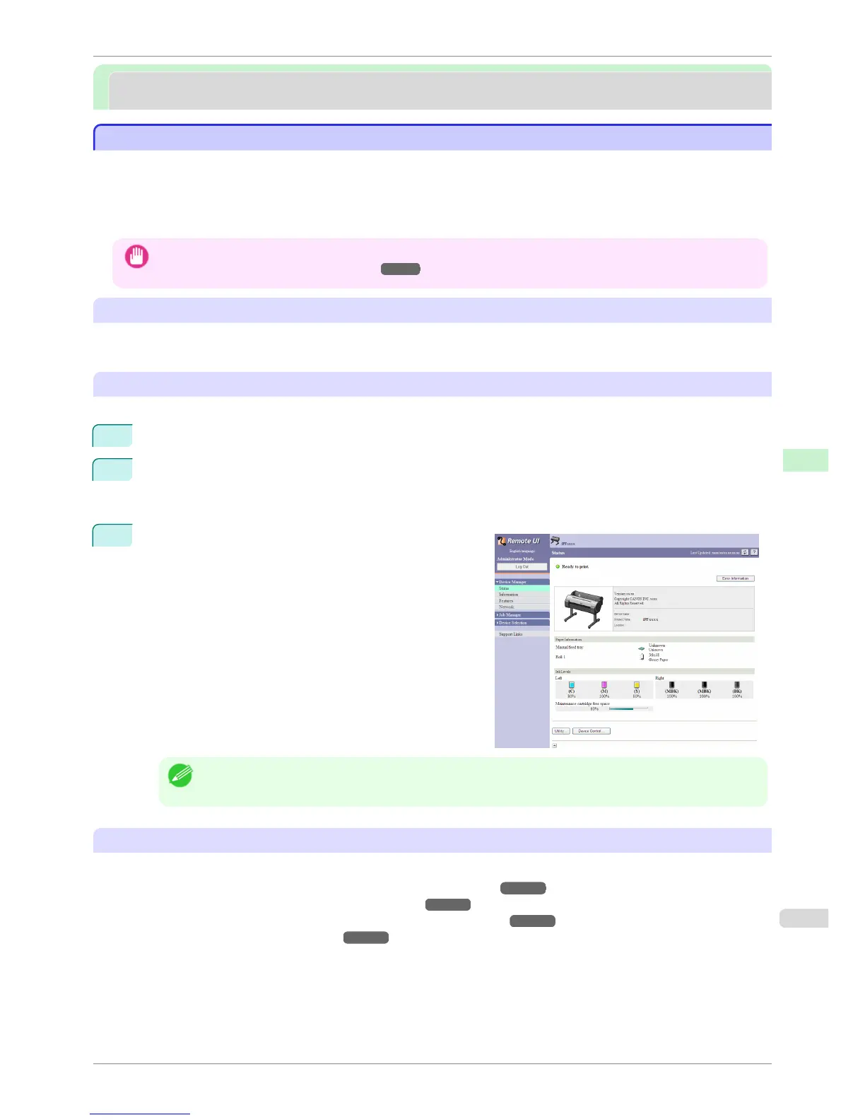 printer status, operate jobs, and configure the settings. Since the software (Web server) for using RemoteUI is built