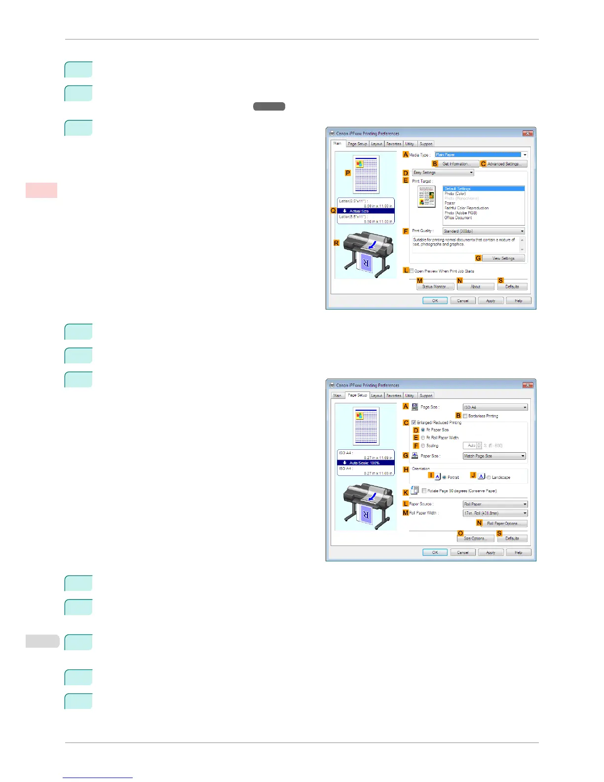 Select the printer in the dialog box, and then open the printer driver dialog box. (See "Accessing the Printer