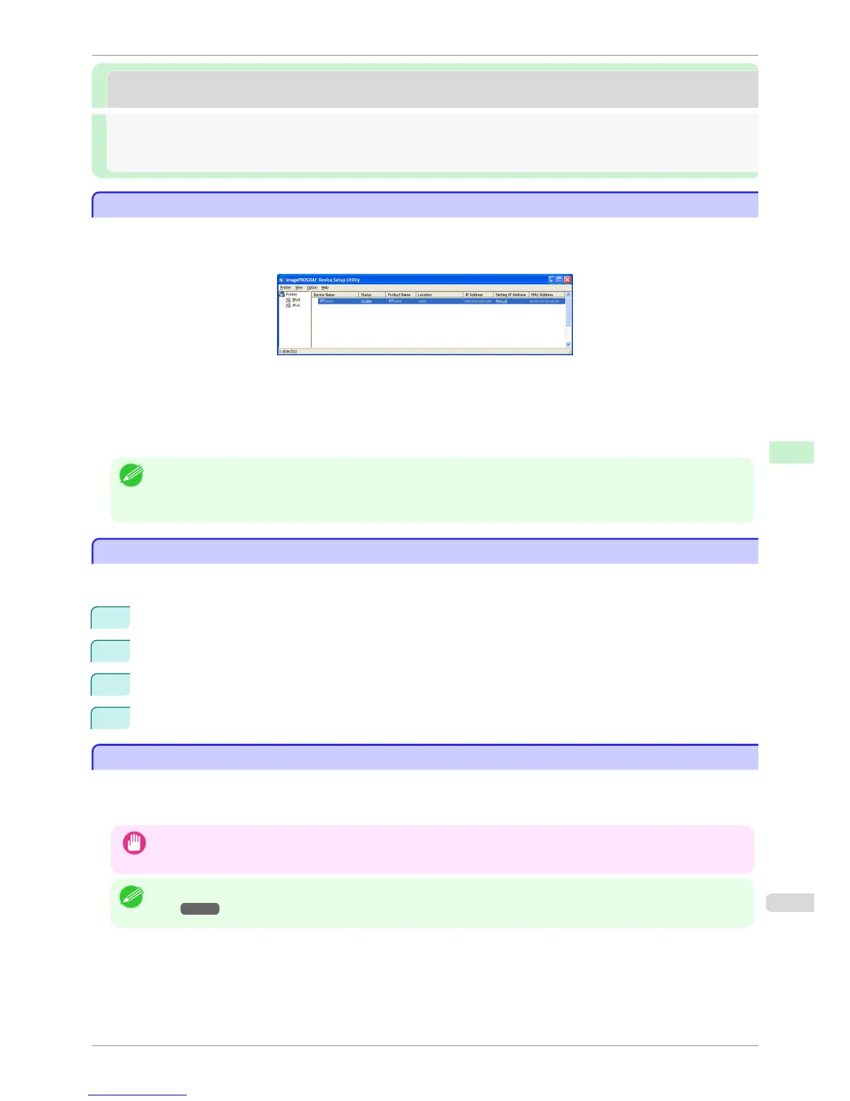 • For instructions on installing imagePROGRAF Device Setup Utility, see "Installing imagePROGRAF Device Setup Utili-