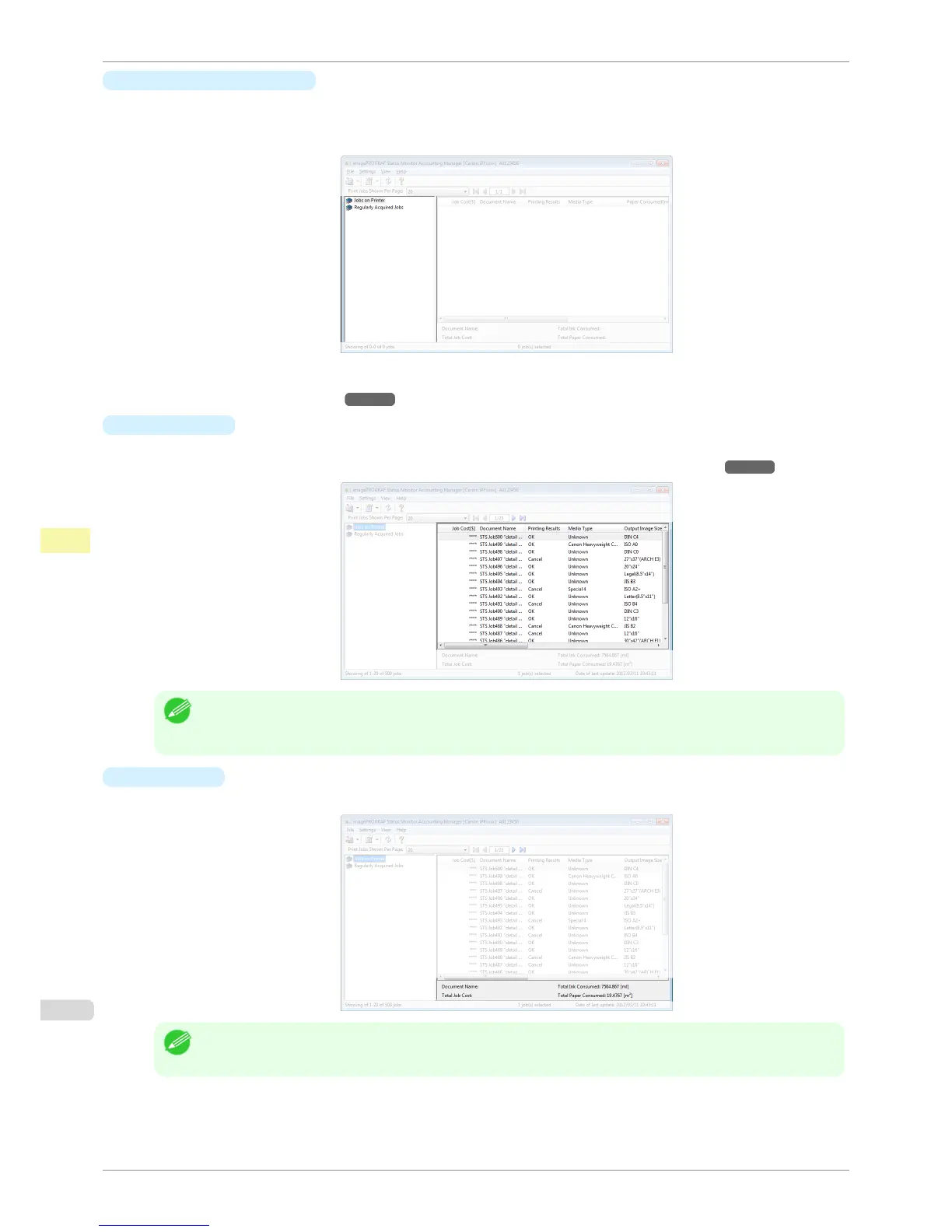For more information on how to select the job logs displayed, see "Switching Between Displaying Jobs on Print-