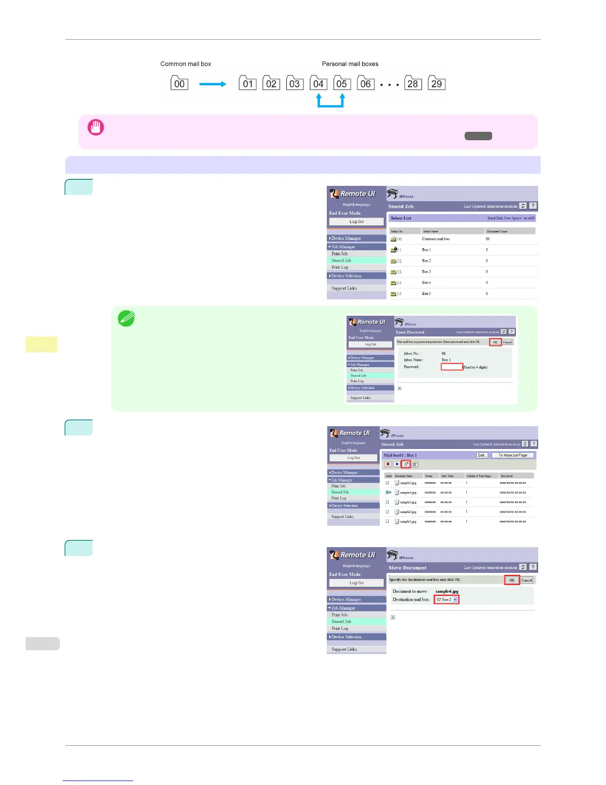 • Jobs stored in the shared mailbox may be automatically deleted under some conditions. To prevent jobs from being