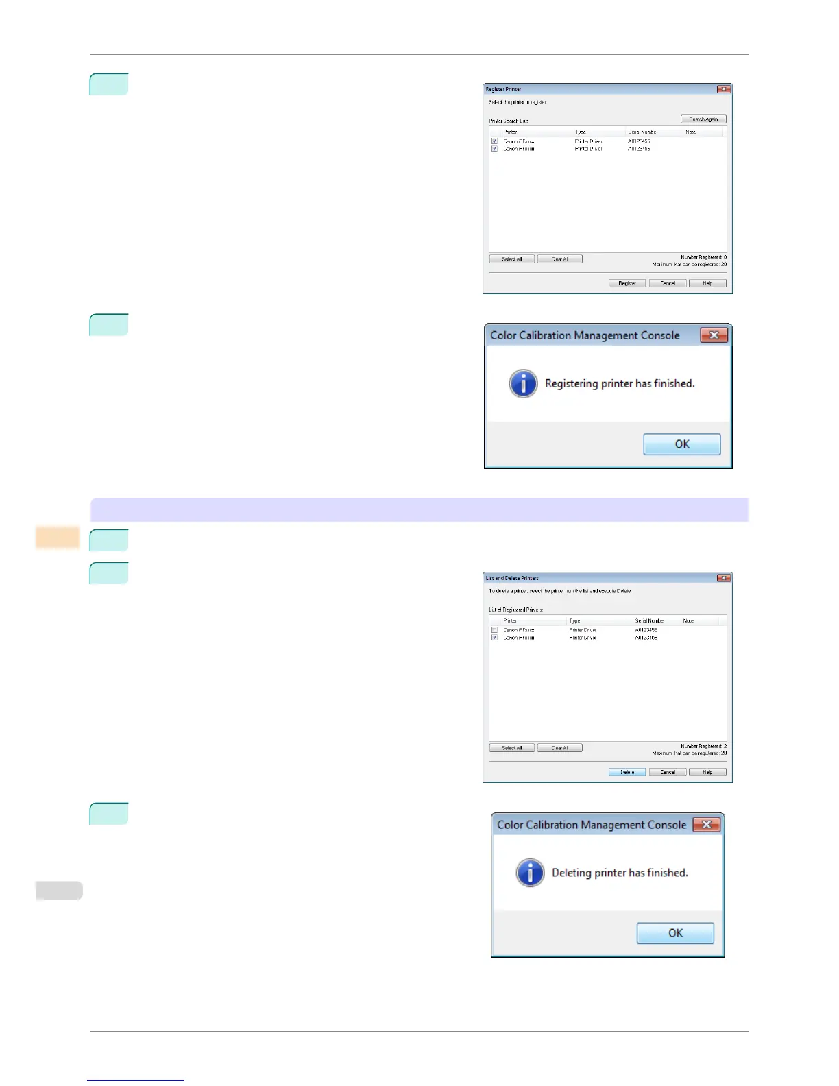 Select the check box for the printer to register from Printer