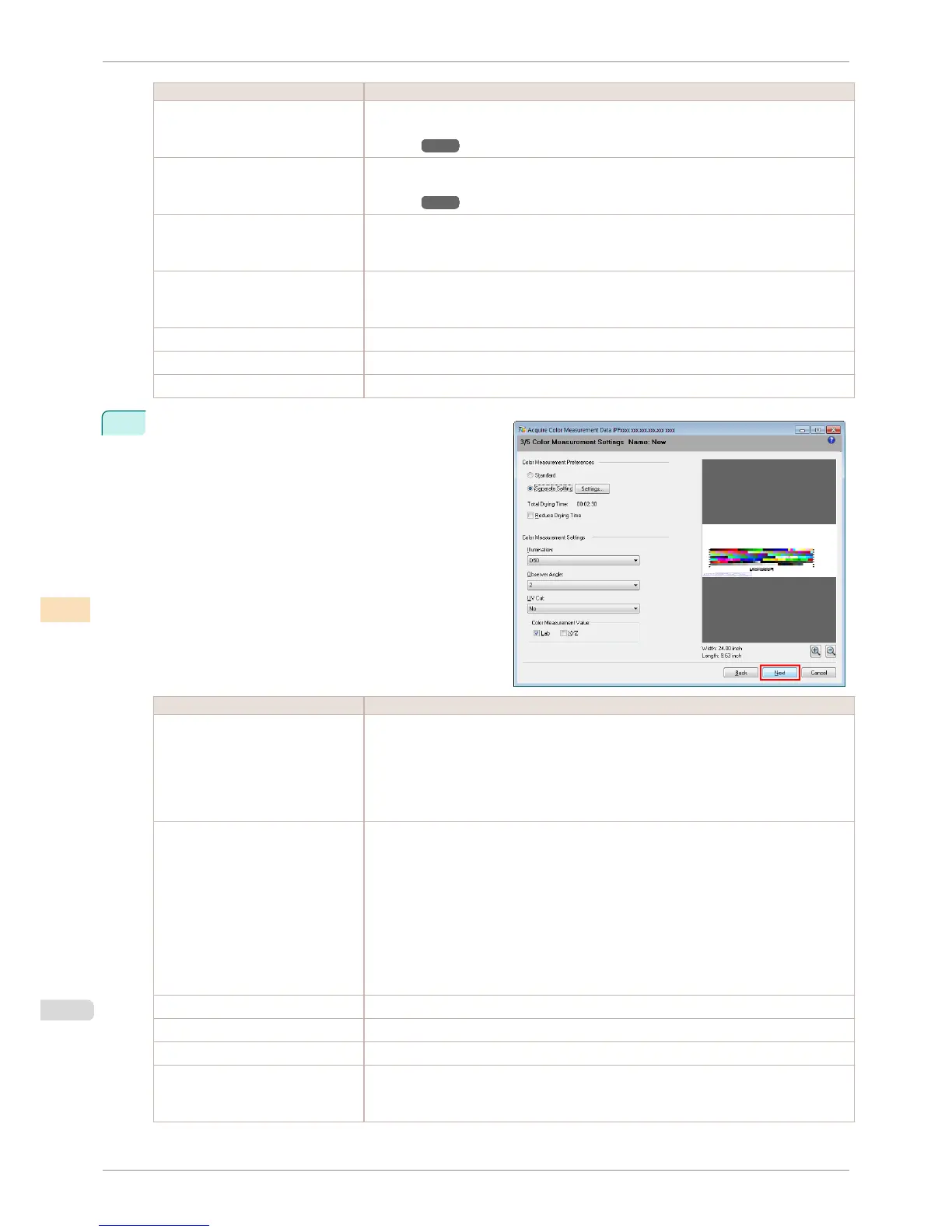 Color Measurement Preferences Configures the pattern size to print the color charts and the drying settings for the printed