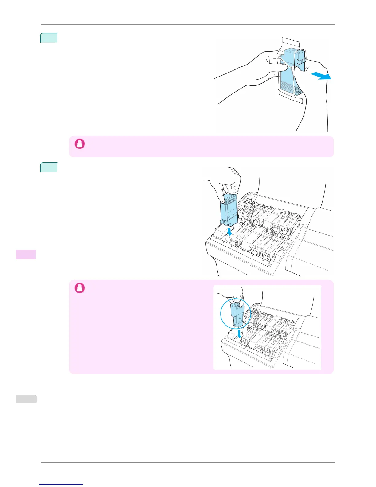• Never touch the ink holes or electrical contacts. This may cause stains, damage the Ink Tank, and affect print-