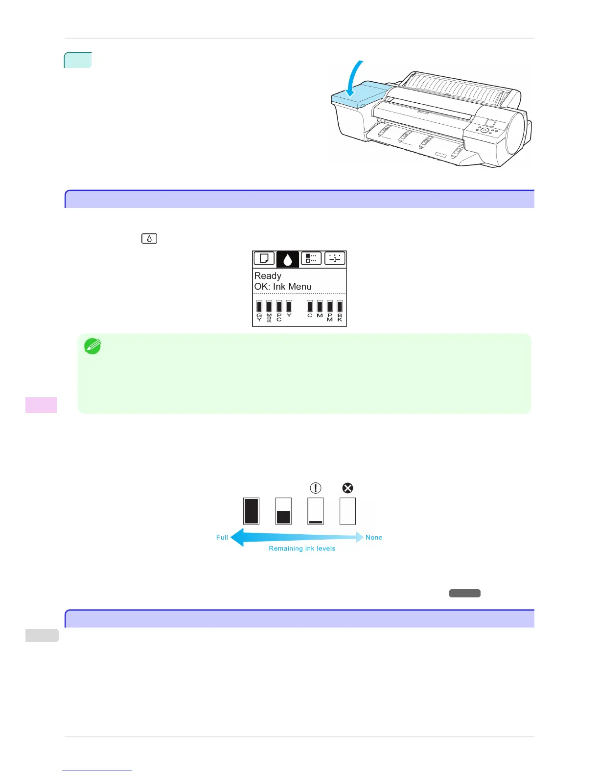 check the remaining ink levels, or after tasks that consume a lot of ink such as large-format printing or head clean-