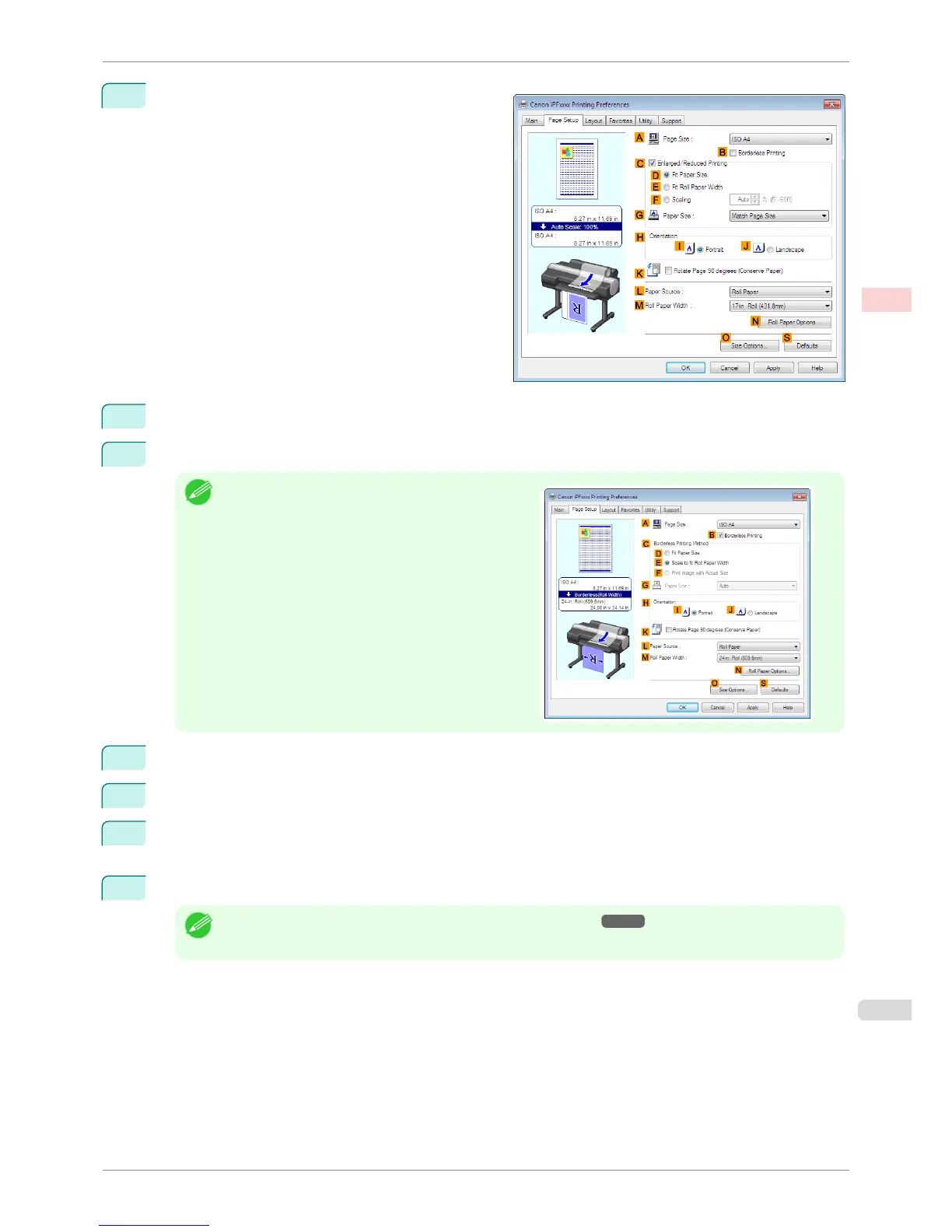 Select the width of the loaded roll in the Roll Paper Width list. In this case, click 16-in. Roll (406.4mm),