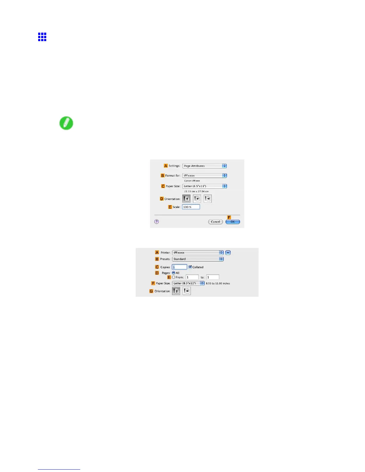 4. If you congured the settings using the Page Attributes dialog box, click F OK to close the