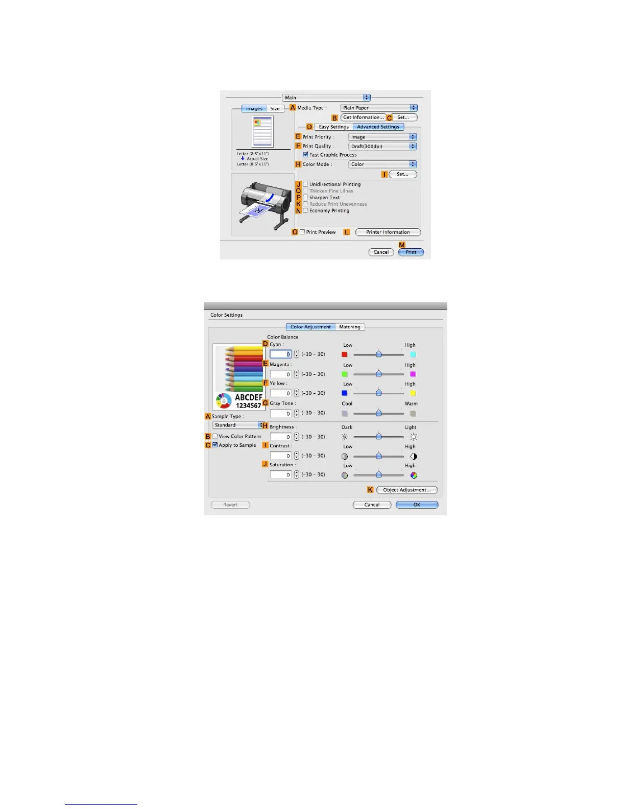 7. Click D Advanced Settings to switch the print mode.