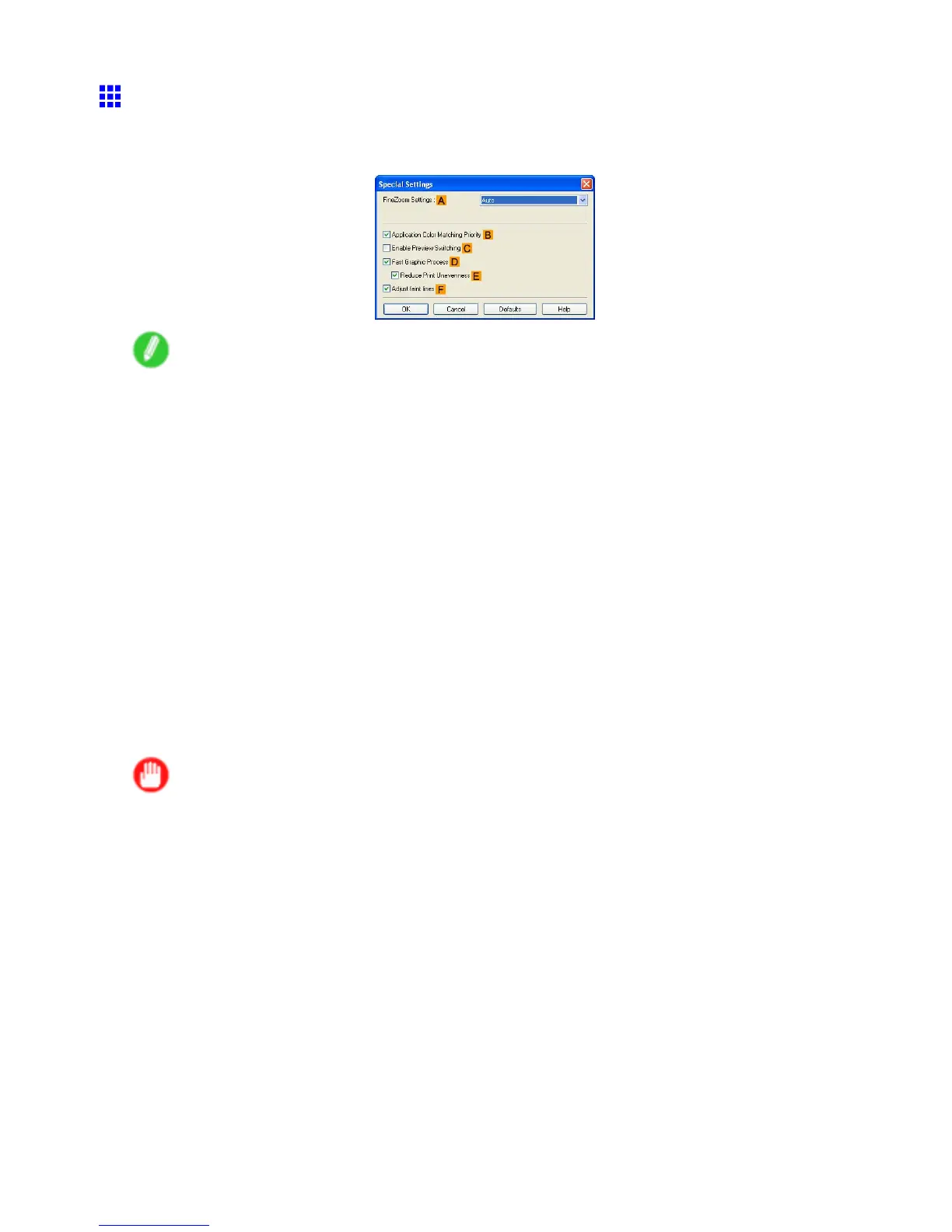 If the printing results are not as you expected, you can change how printing is processed in the Special Settings