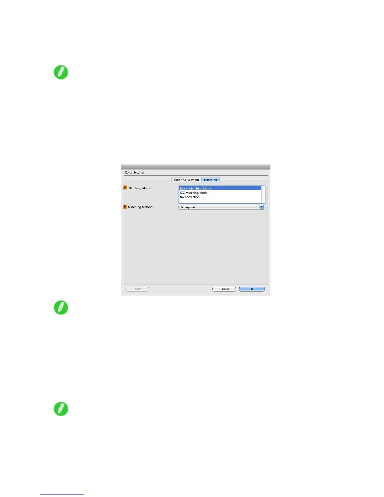 Select the matching method that suits the document to be printed. V arious Matching Method options are