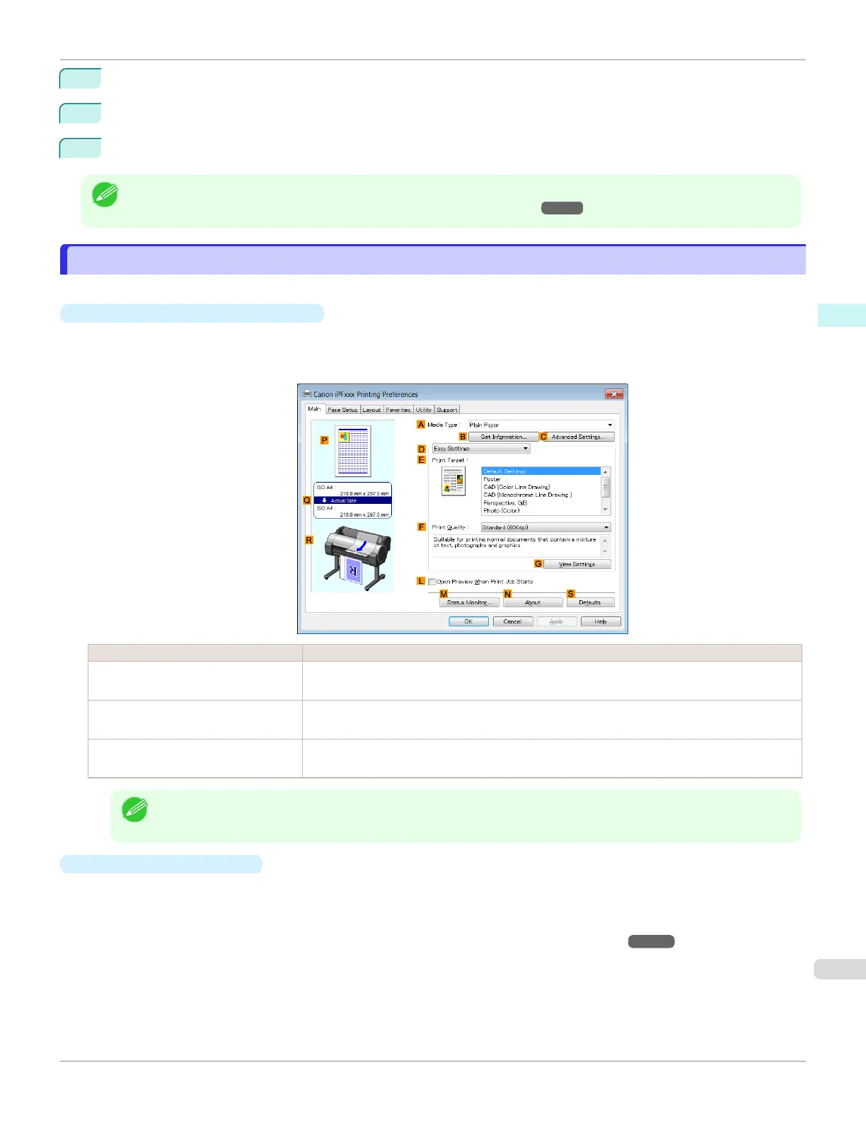 To confirm the Print Target specified in Easy Settings, click G View Settings on the Main sheet to display the