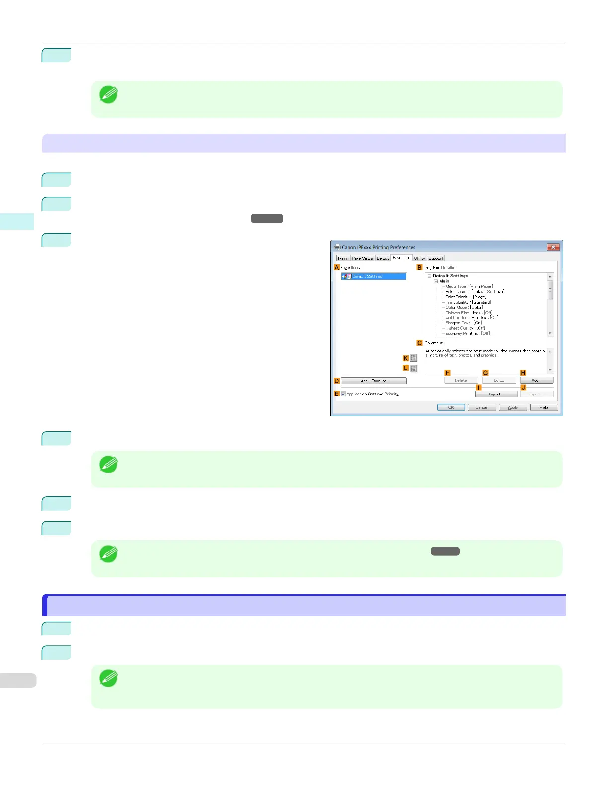 Click D Apply Favorite to replace the favorite settings with the current print settings.