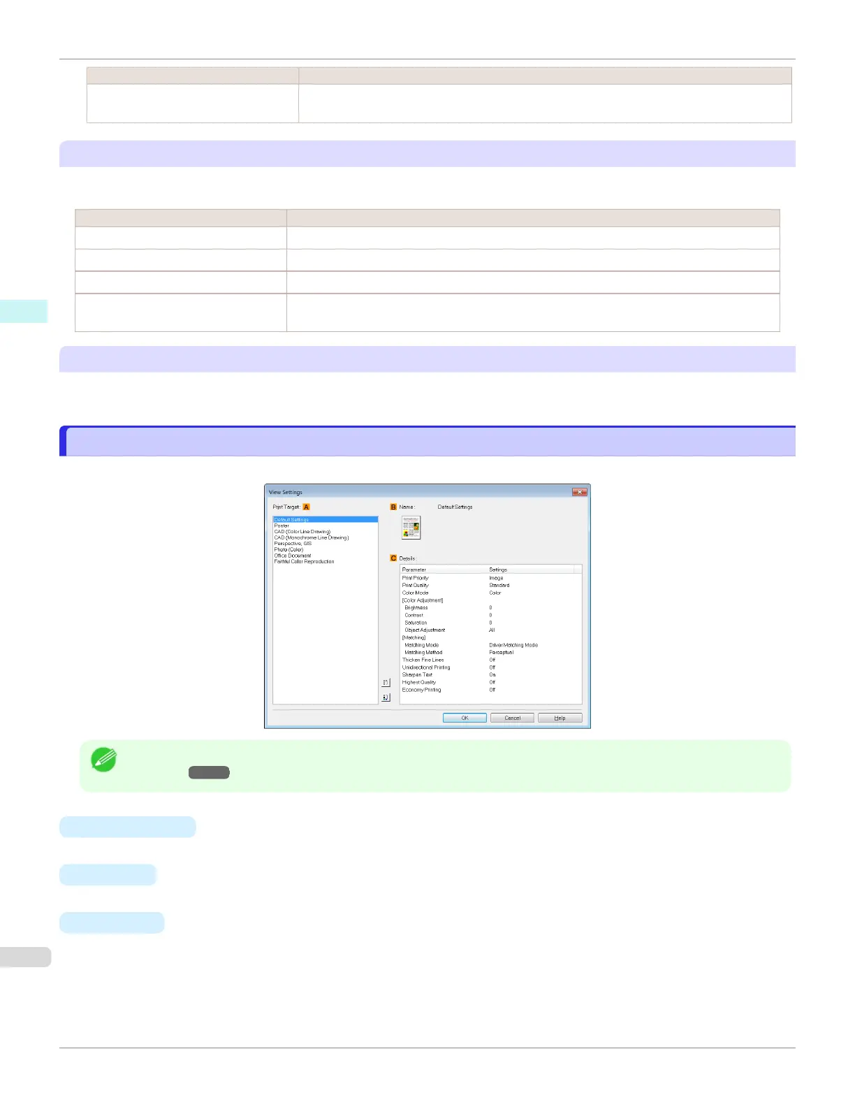 Here, you can confirm detailed settings values for each listed item for the selected Print Target.