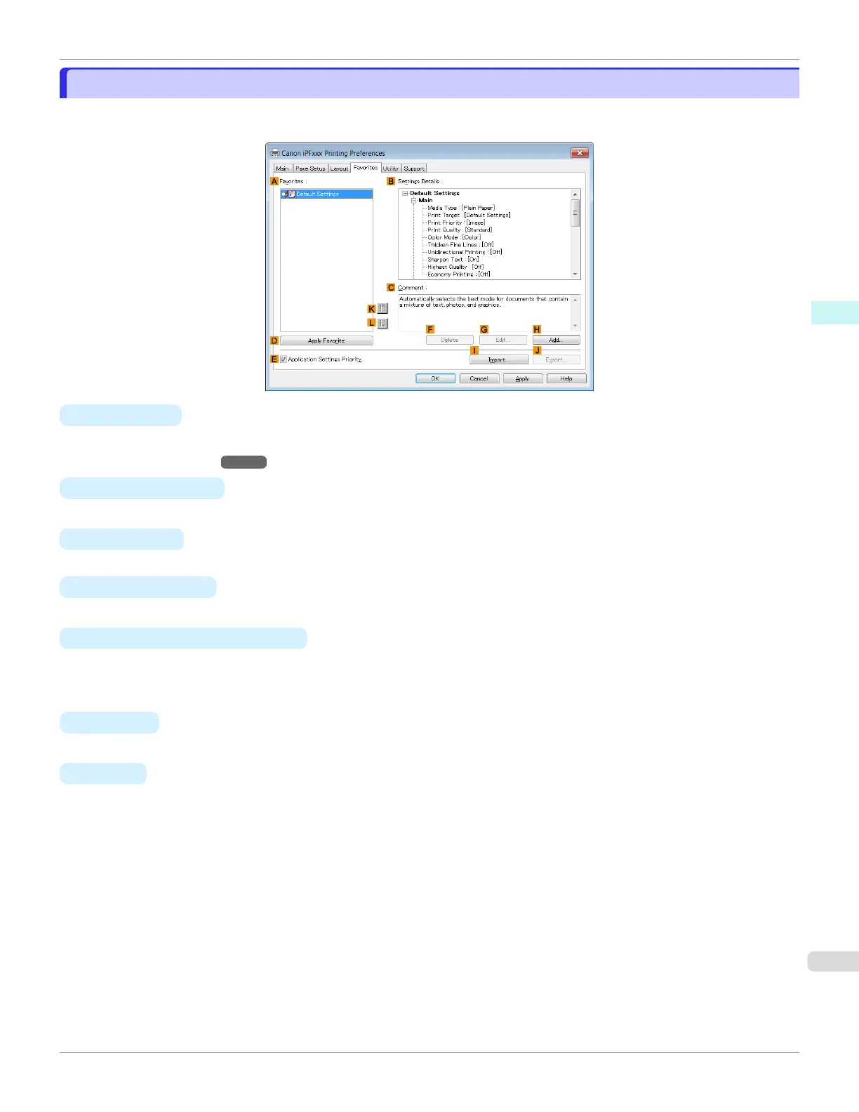 lected in the A Favorites, when clicking D Apply Favorite. For details on the settings items used in preference,