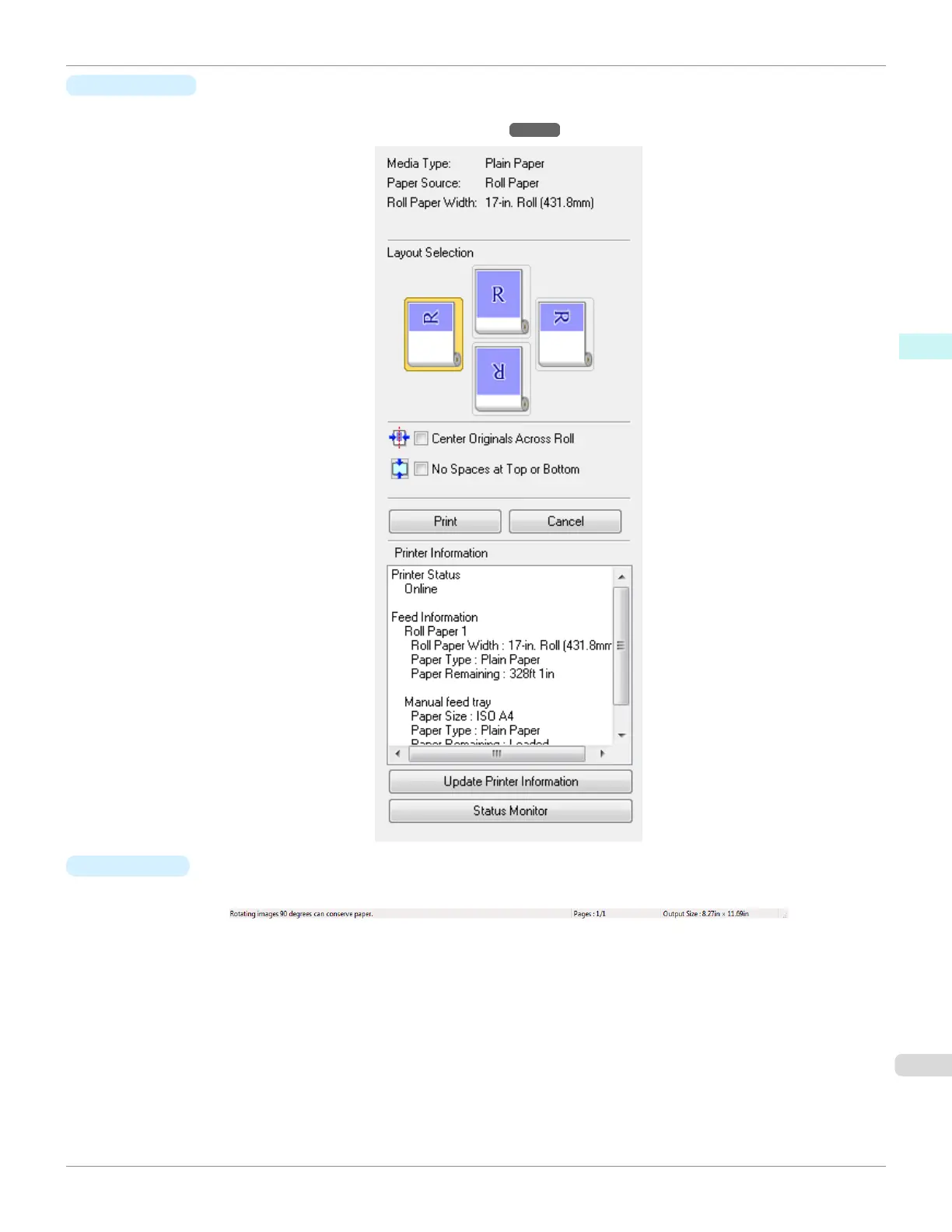This allows you to set the print conditions and perform a print job.