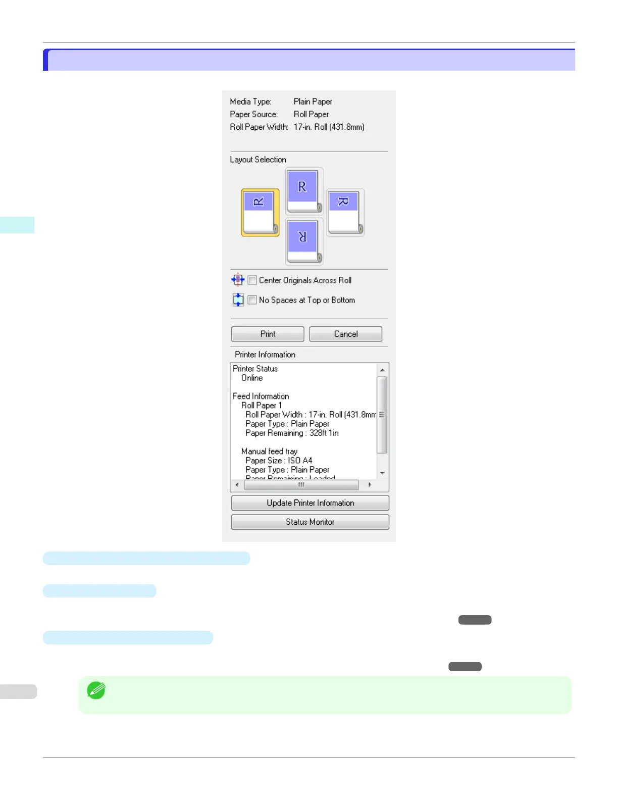 For more information about Center Originals Across Roll, see "Print on the Center." ➔P.198