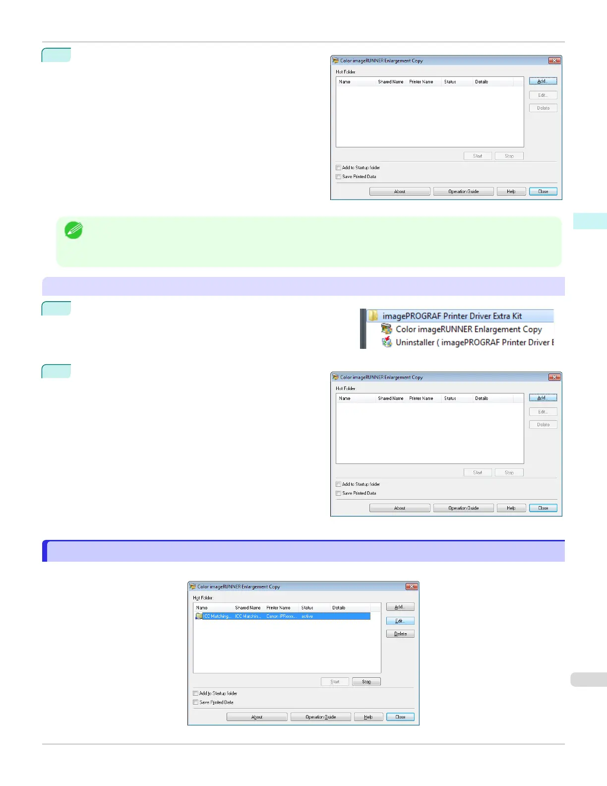 If you click on the Add to Startup folder check box in the Color imageRUNNER Enlargement Copy dialog box, the