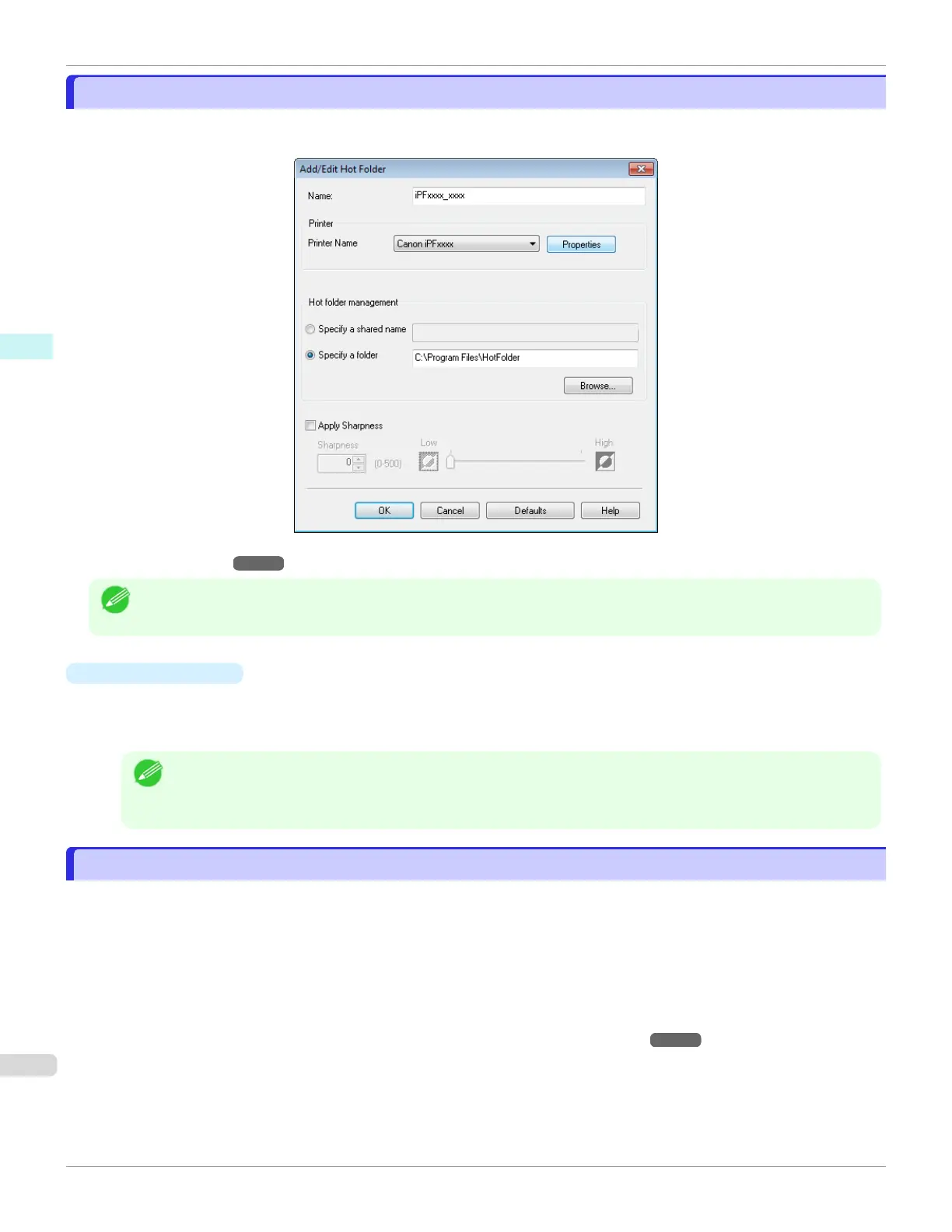 The printer driver opens when you click the Properties button in the Add/Edit Hot Folder dialog box. The printer driv-