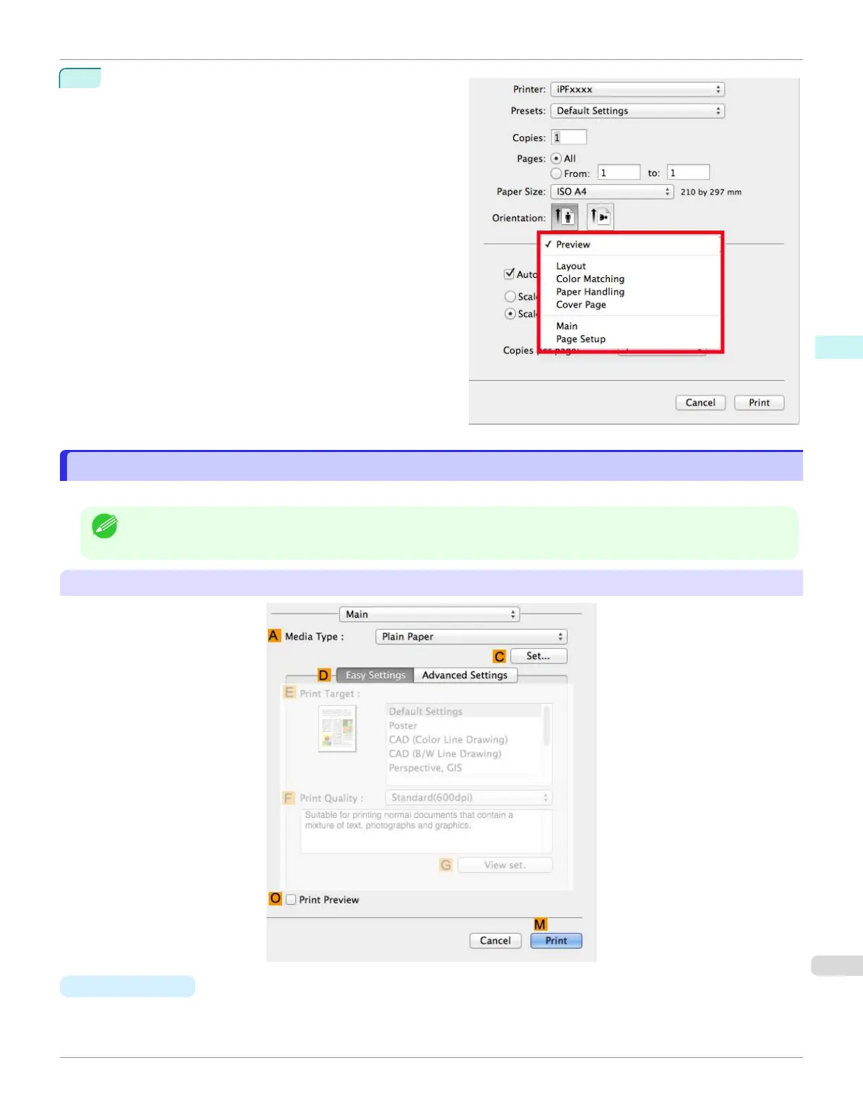 On the Main pane, choose Easy Settings to specify basic print settings based on the print target, or switch to Ad-