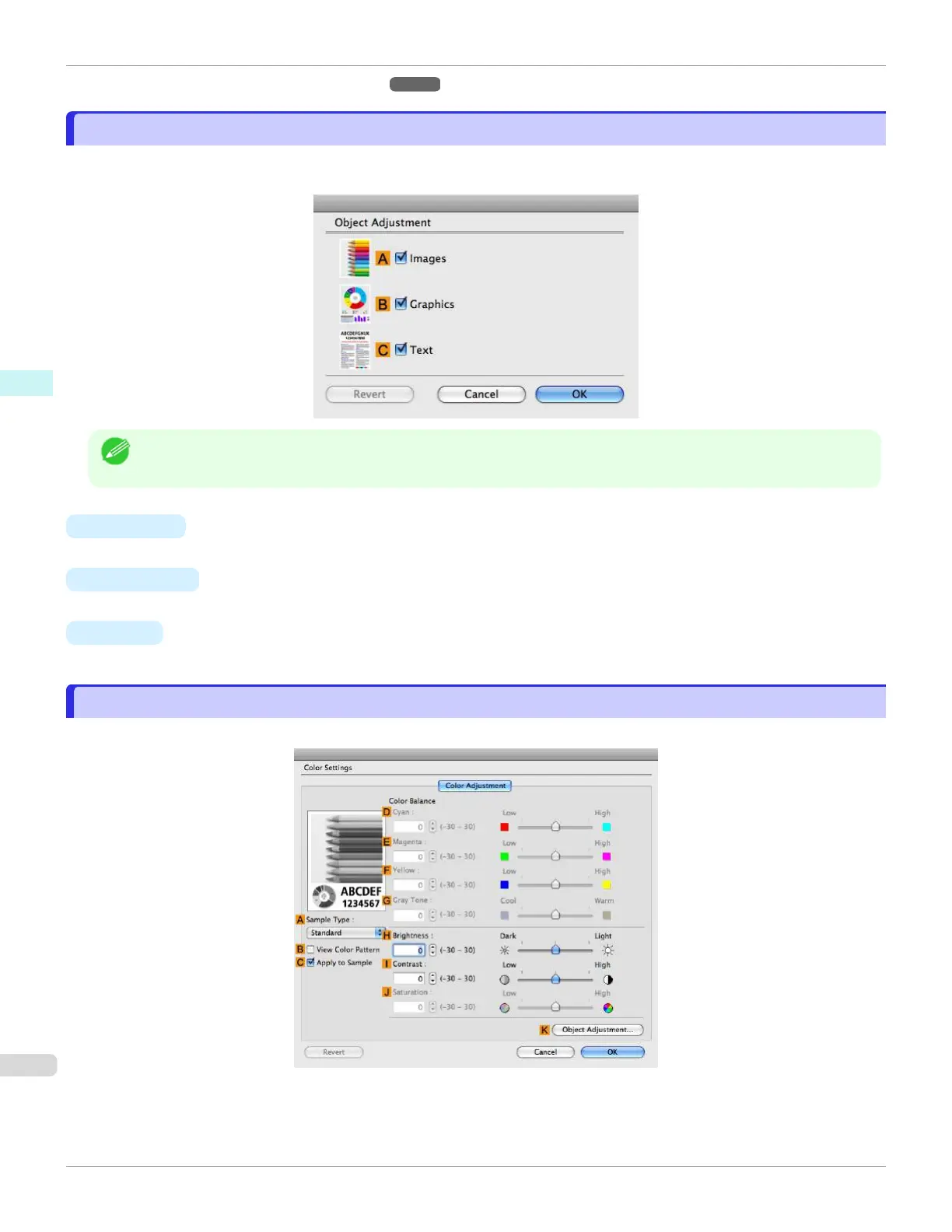 In the Object Adjustment dialog box, you can specify what type of print jobs to apply color adjustment to. If an original
