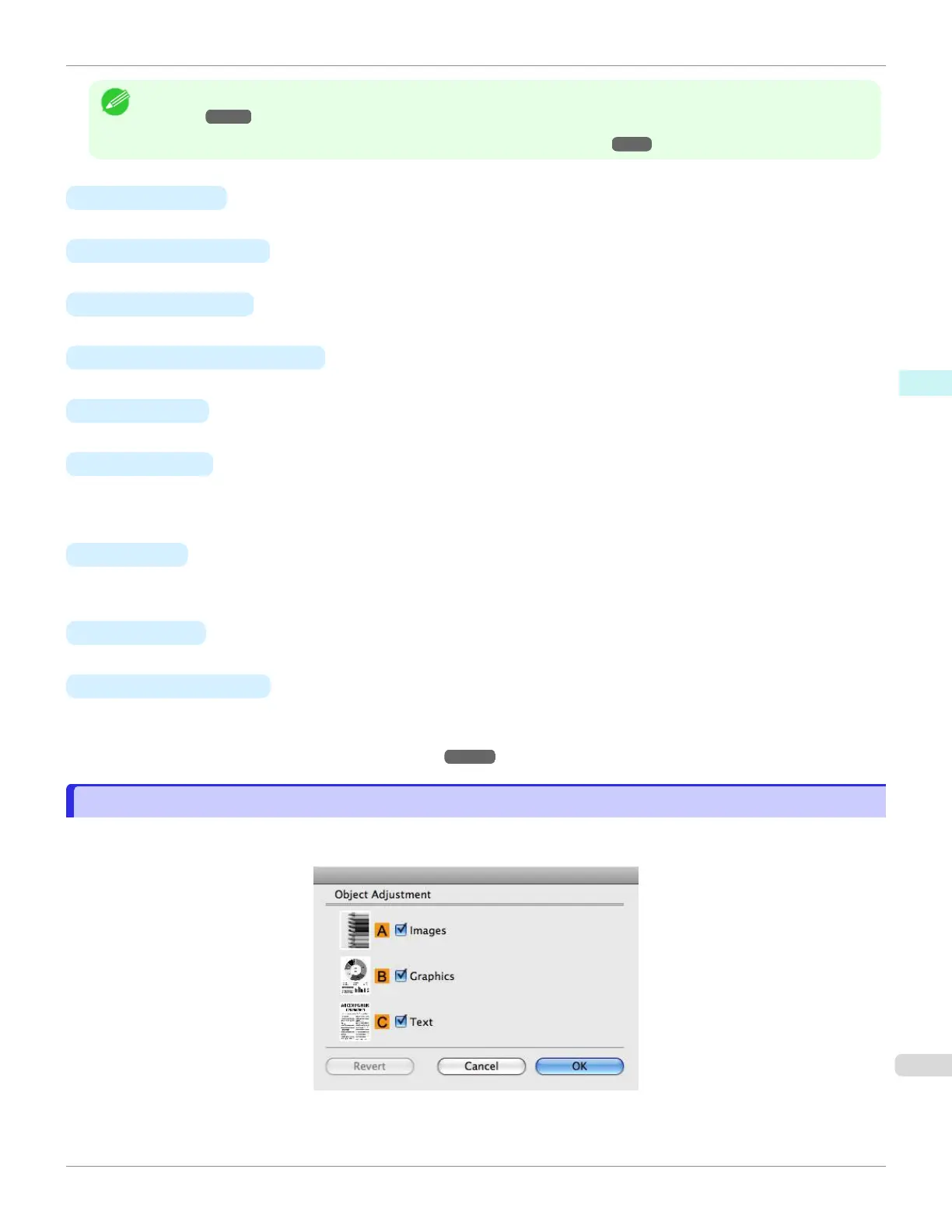 In the Object Adjustment dialog box, you can specify what type of print jobs to apply color adjustment to. If an original