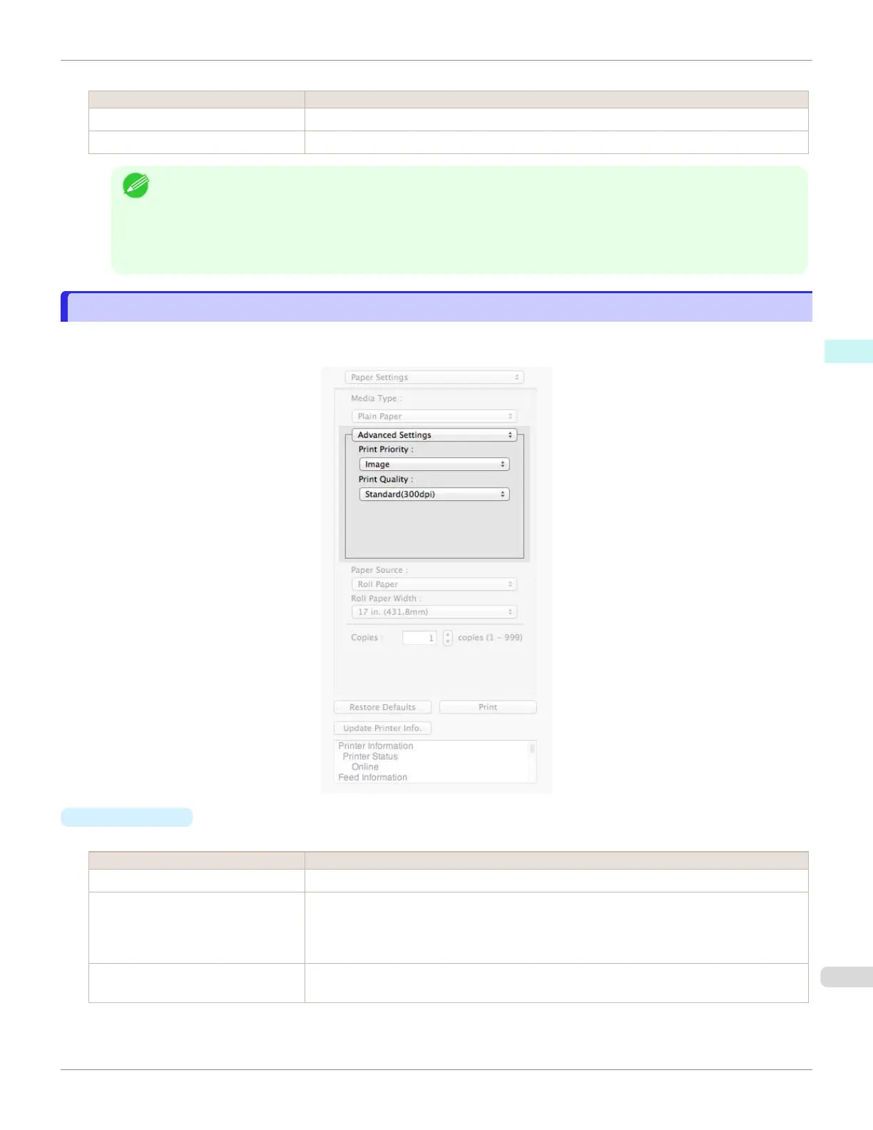 The availability of settings is determined by the media type and print priority selections.