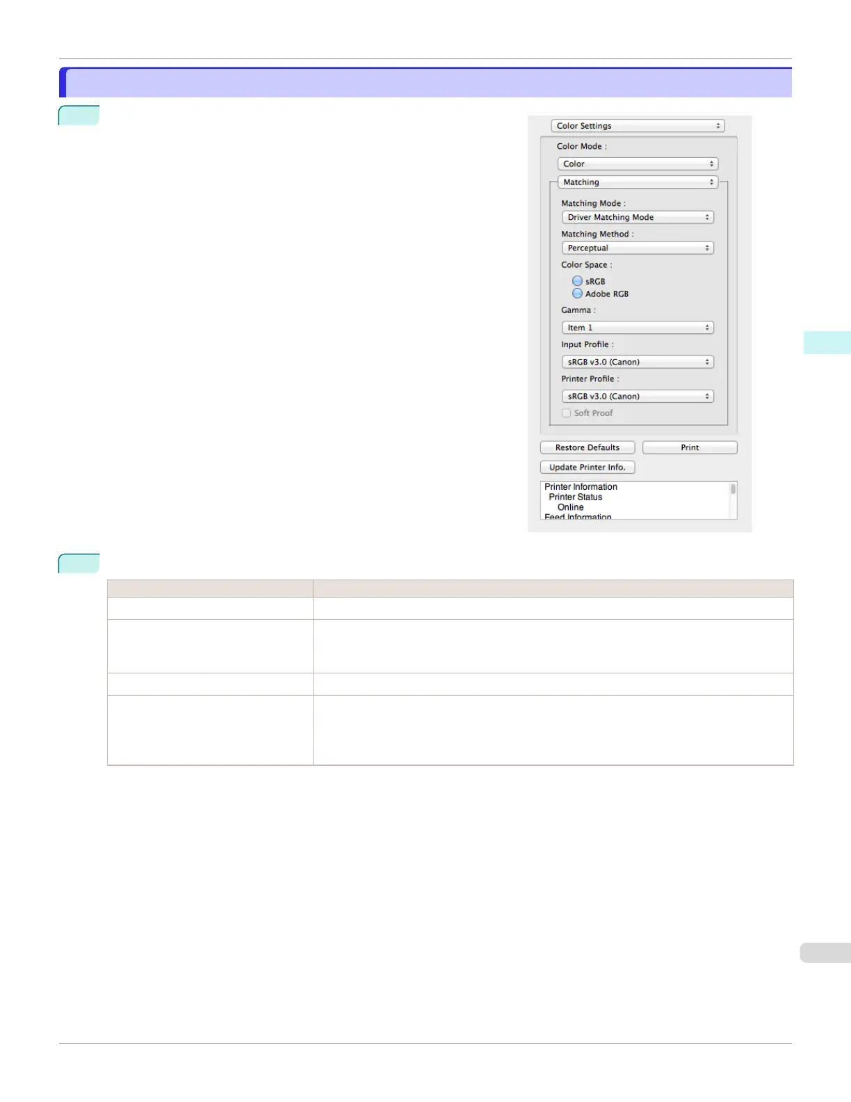 Perceptual Color-matching optimized for printing typical photos attractively. Smooth gradation is a fea-