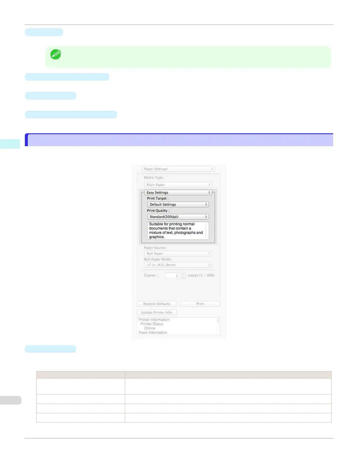 Default Settings Suitable for printing normal documents that contain a mixture of text, photographs, and