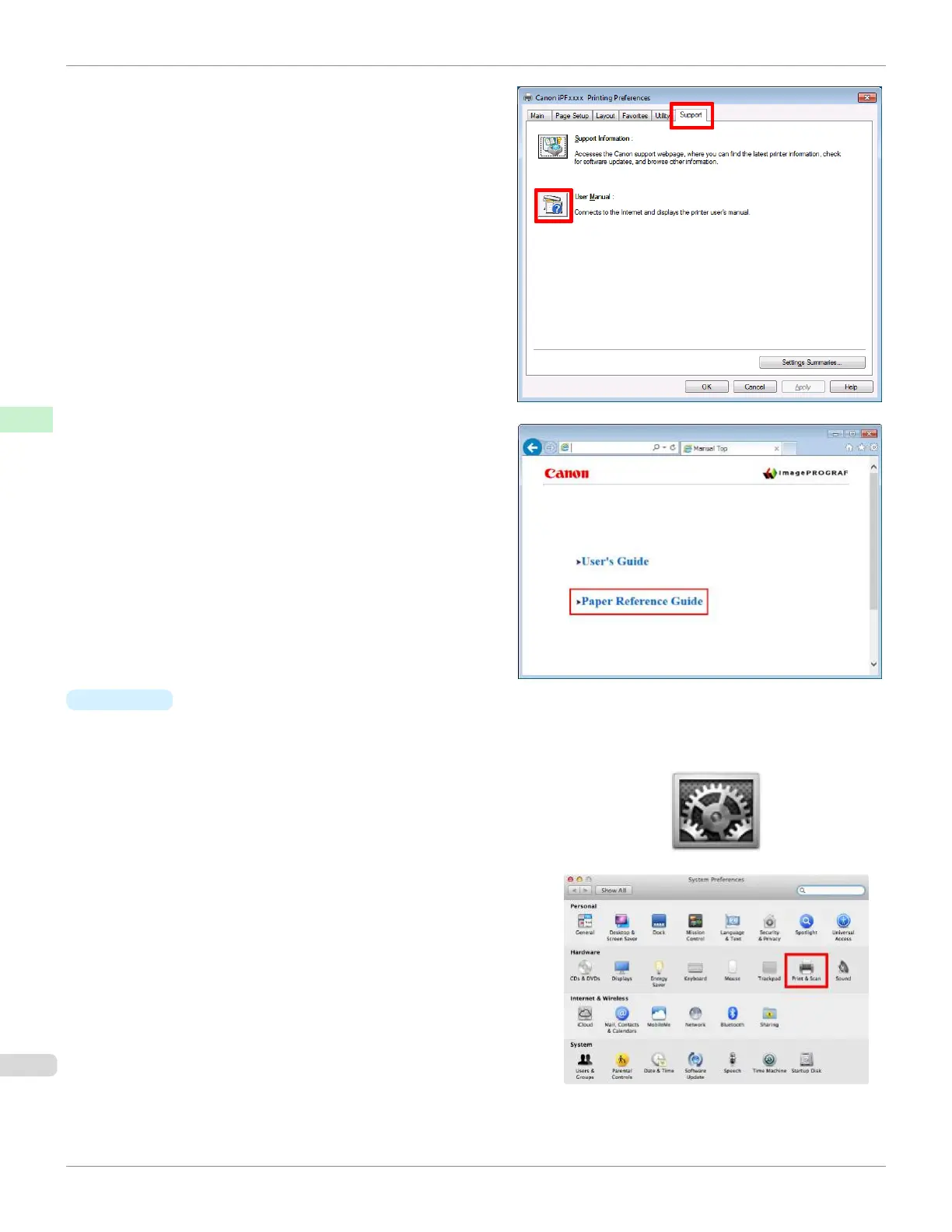 The basic instructions for displaying the Paper Reference Guide from the imagePROGRAF Printmonitor are as