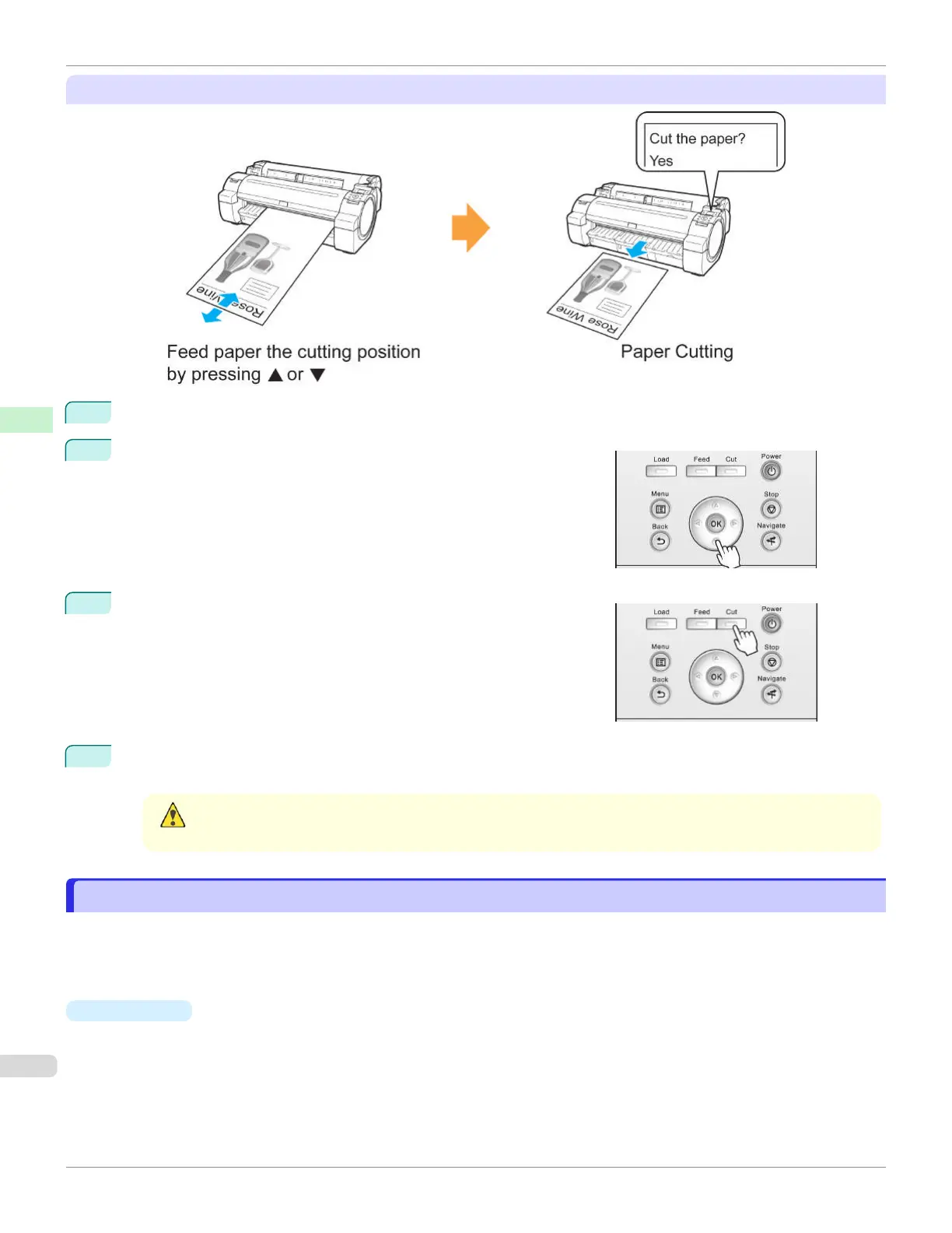 Press the ▼ button to advance the roll to the position for cutting.