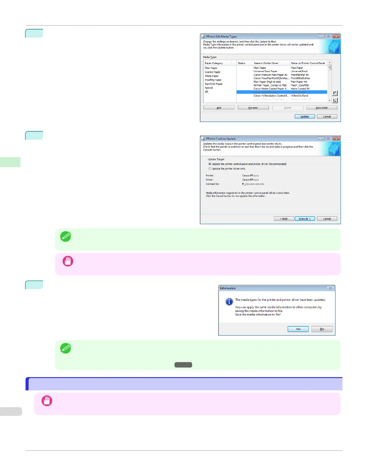 When setting a data to the printer that differs from the data to be updated, the selected media information file