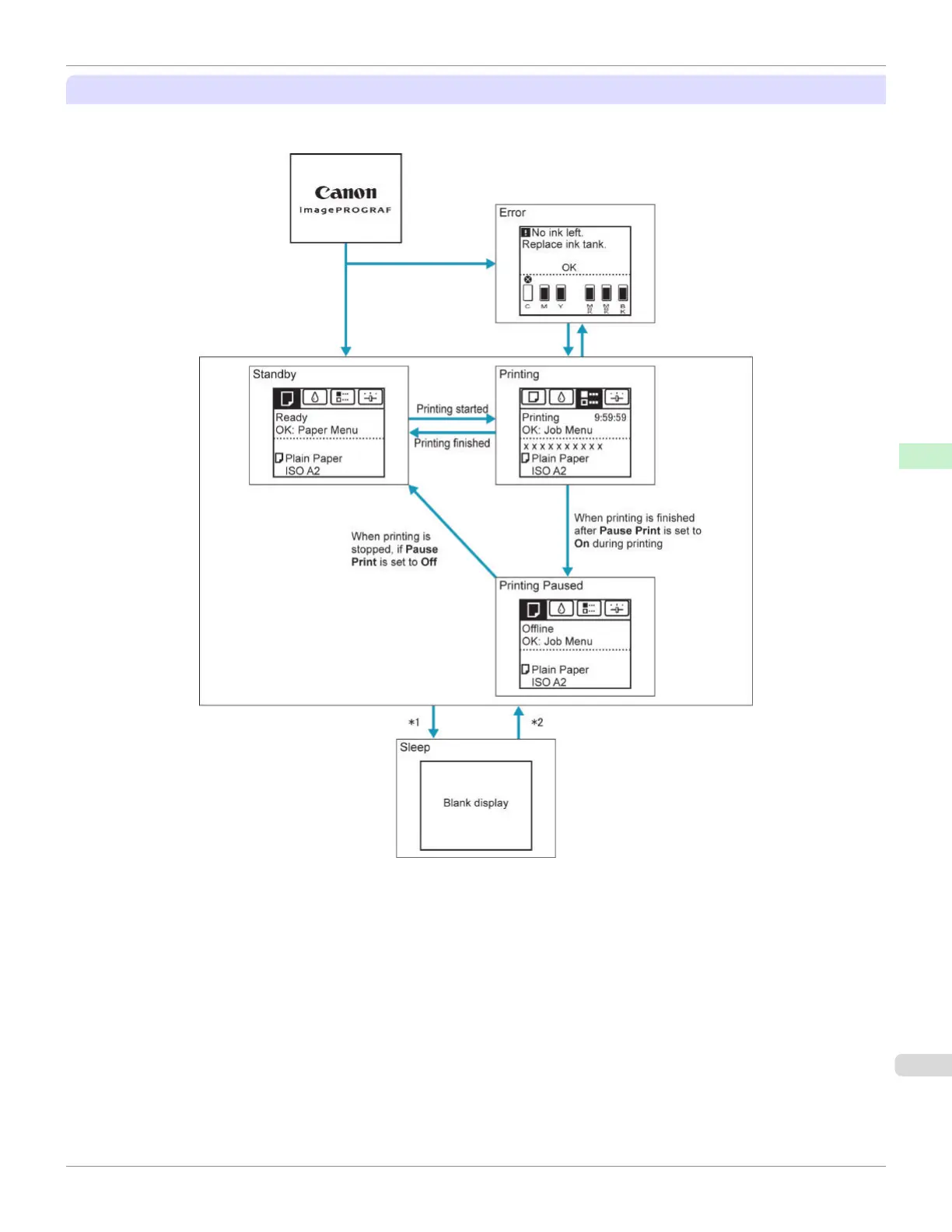 *1: The printer automatically enters Sleep mode when idle for a specific period (by default, five minutes), that is, if no
