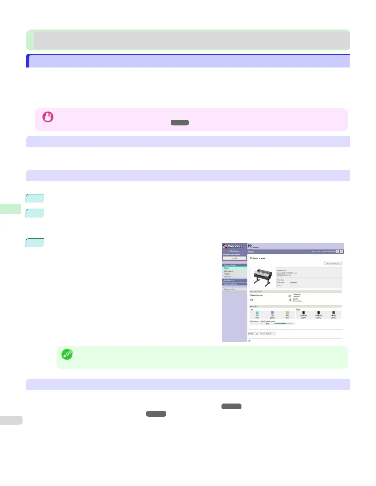 printer status, operate jobs, and configure the settings. Since the software (Web server) for using RemoteUI is built in