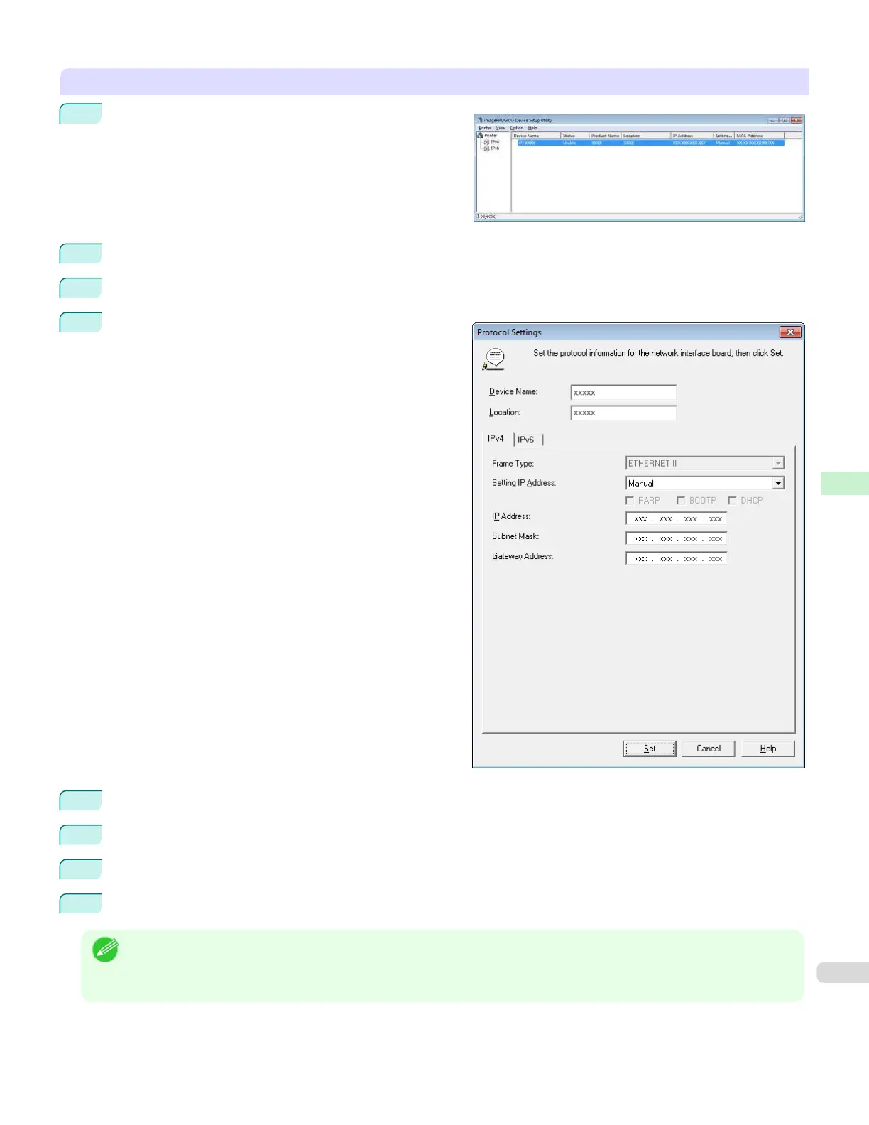Configuring the IP Address Using imagePROGRAF Device Setup Utility