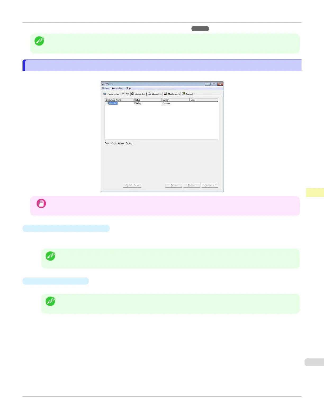 You can use the Job sheet in imagePROGRAF Status Monitor for operations such as pausing and canceling print jobs.