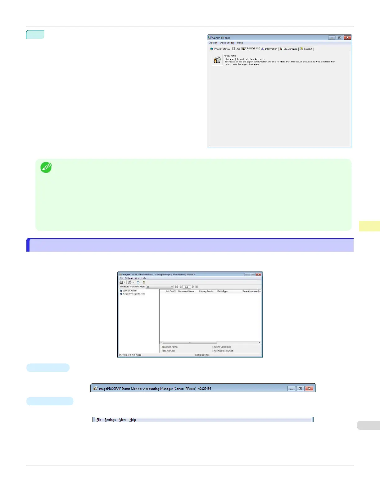 The Accounting Manager main window consists of a title bar, menu bar, toolbars, listed job selection area, job list area,