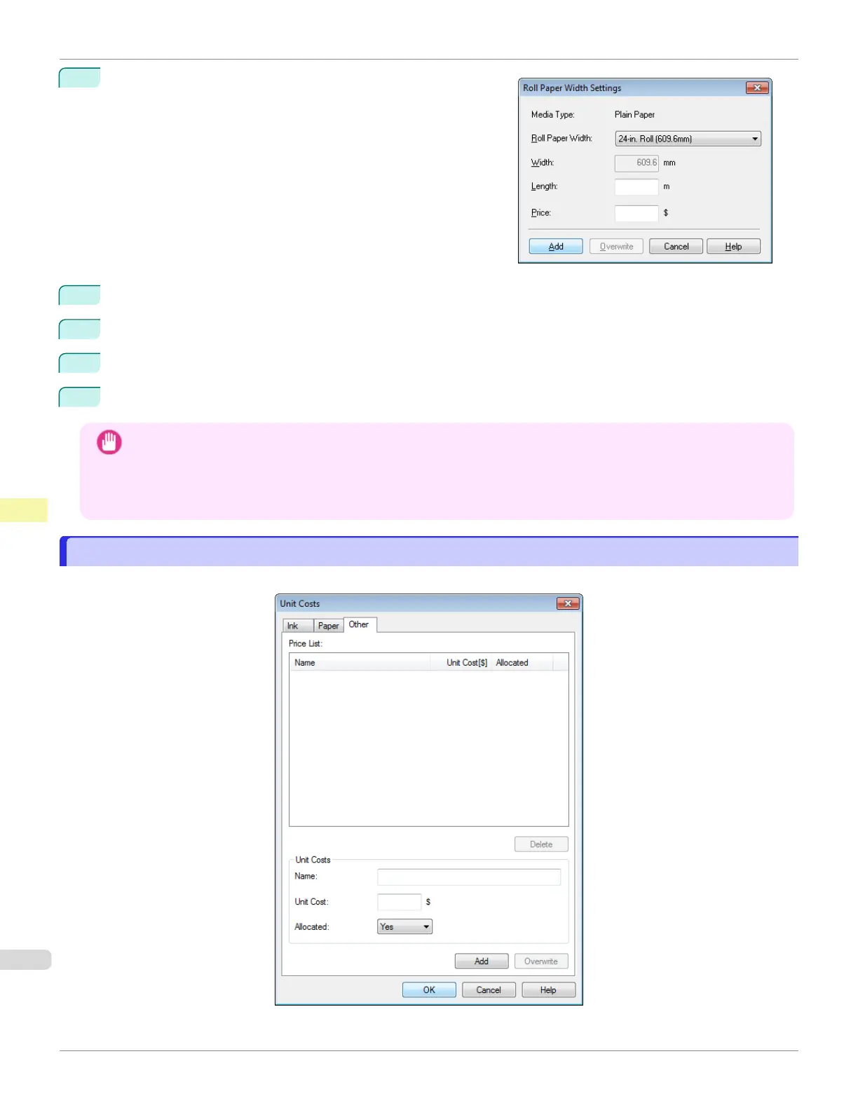 is calculated using the price configured in the Roll Paper Width Settings dialog box.