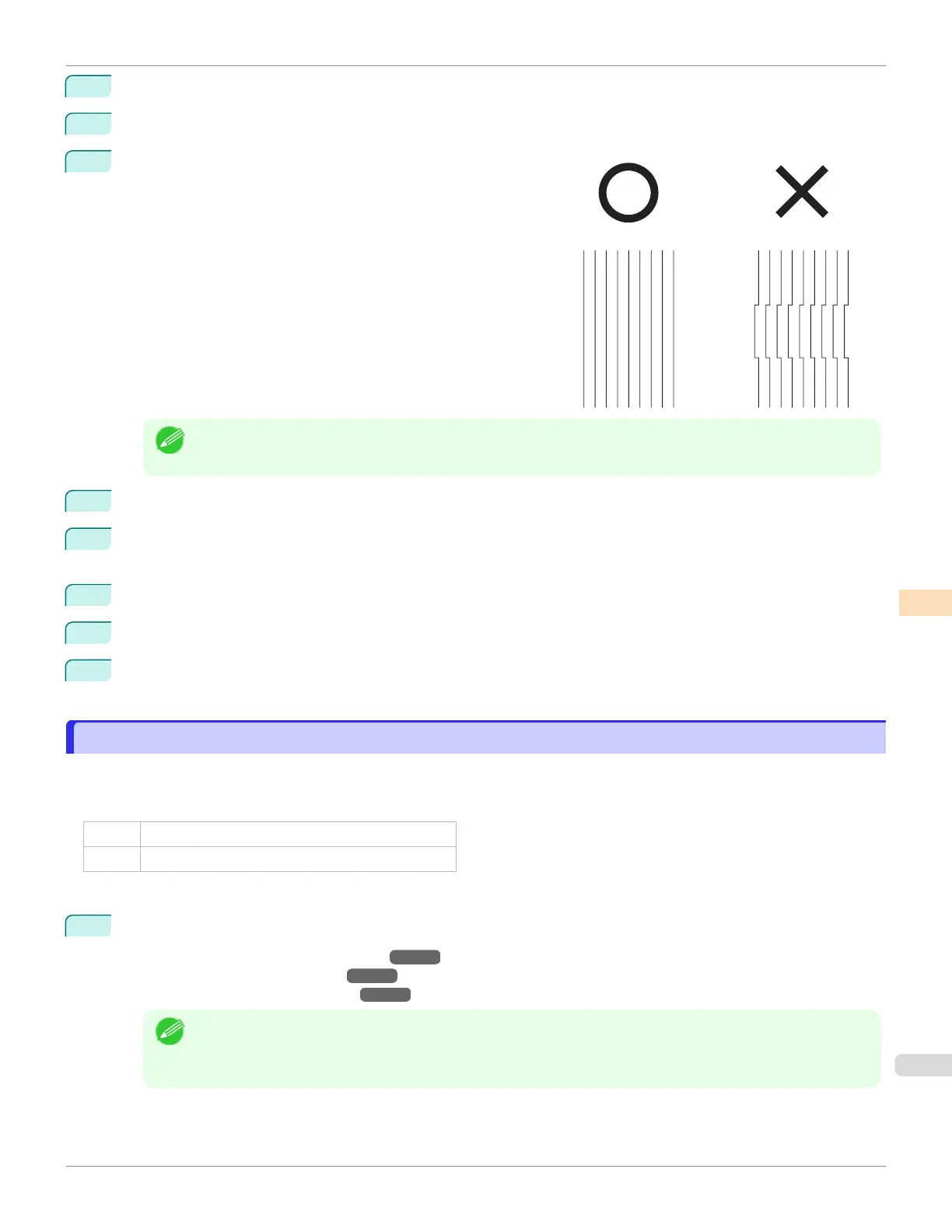 If printed lines are misaligned, execute Head Inc. Adj. to adjust the angle of inclination of the Printhead. Executing