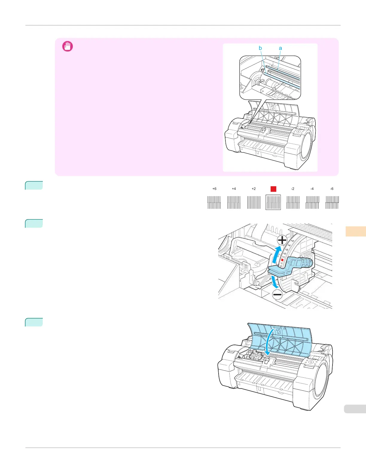 Do not touch the Linear Scale (a) or Carriage Shaft (b).