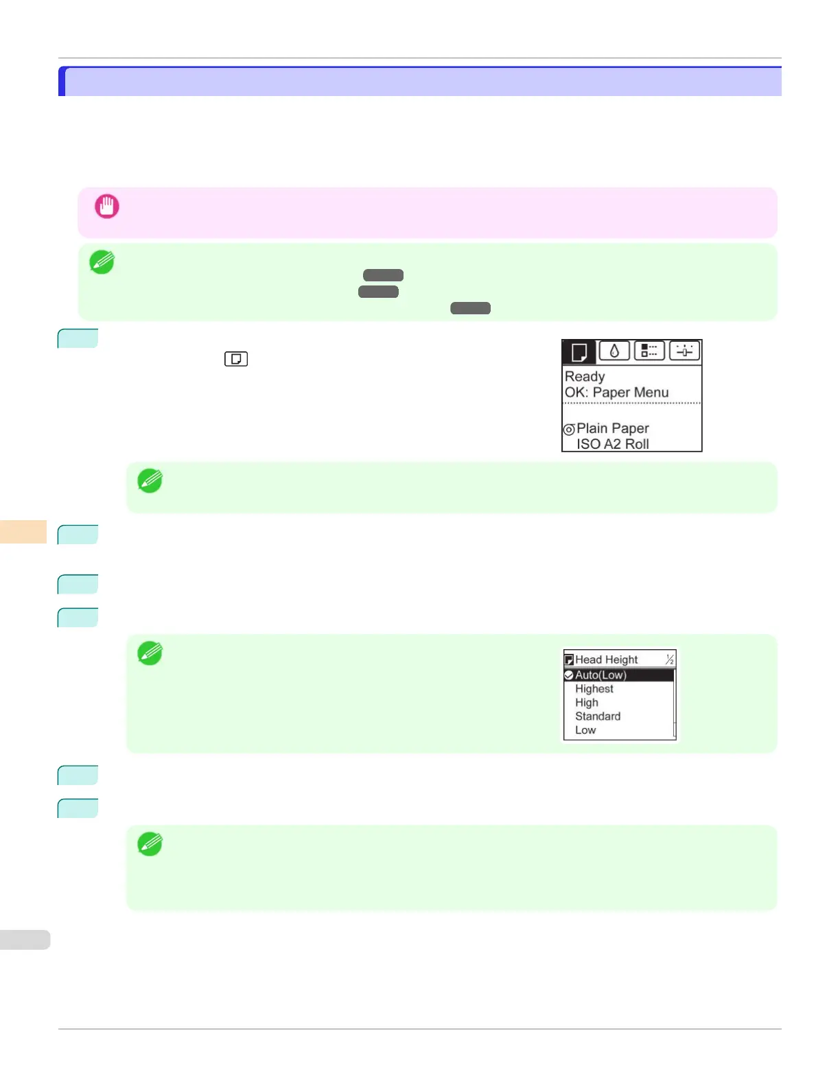 Specifying a low Printhead height makes images clearer and enhances printing quality but may cause paper to rub